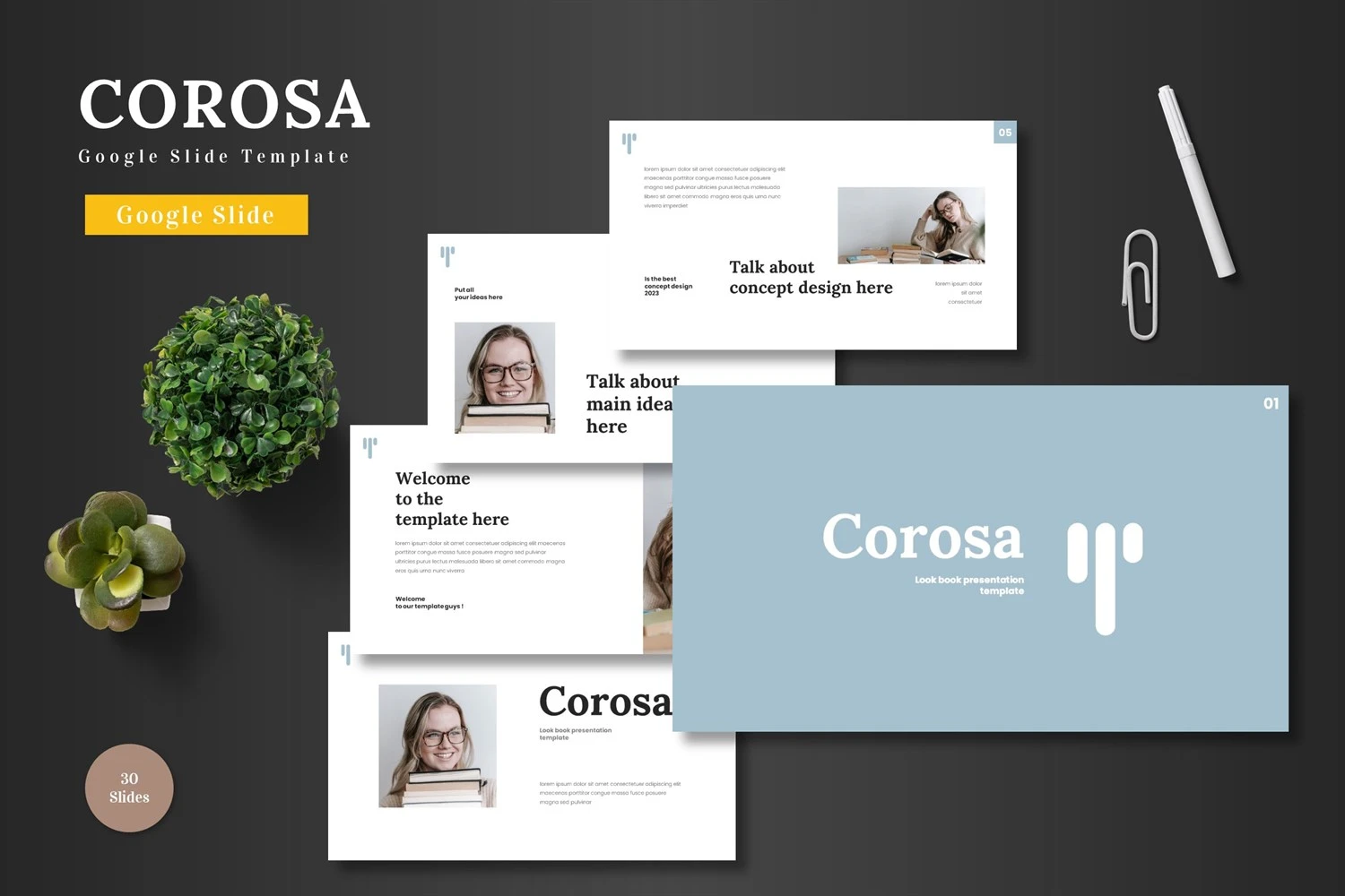 This is **Corosa - Google Slide Template** - Get it now! Google Slides is a great template ready to use. Clean, scalable, colorful, and multipurpose. Suitable for Business, Pitch Deck, E-commerce, or Product promotion purposes.