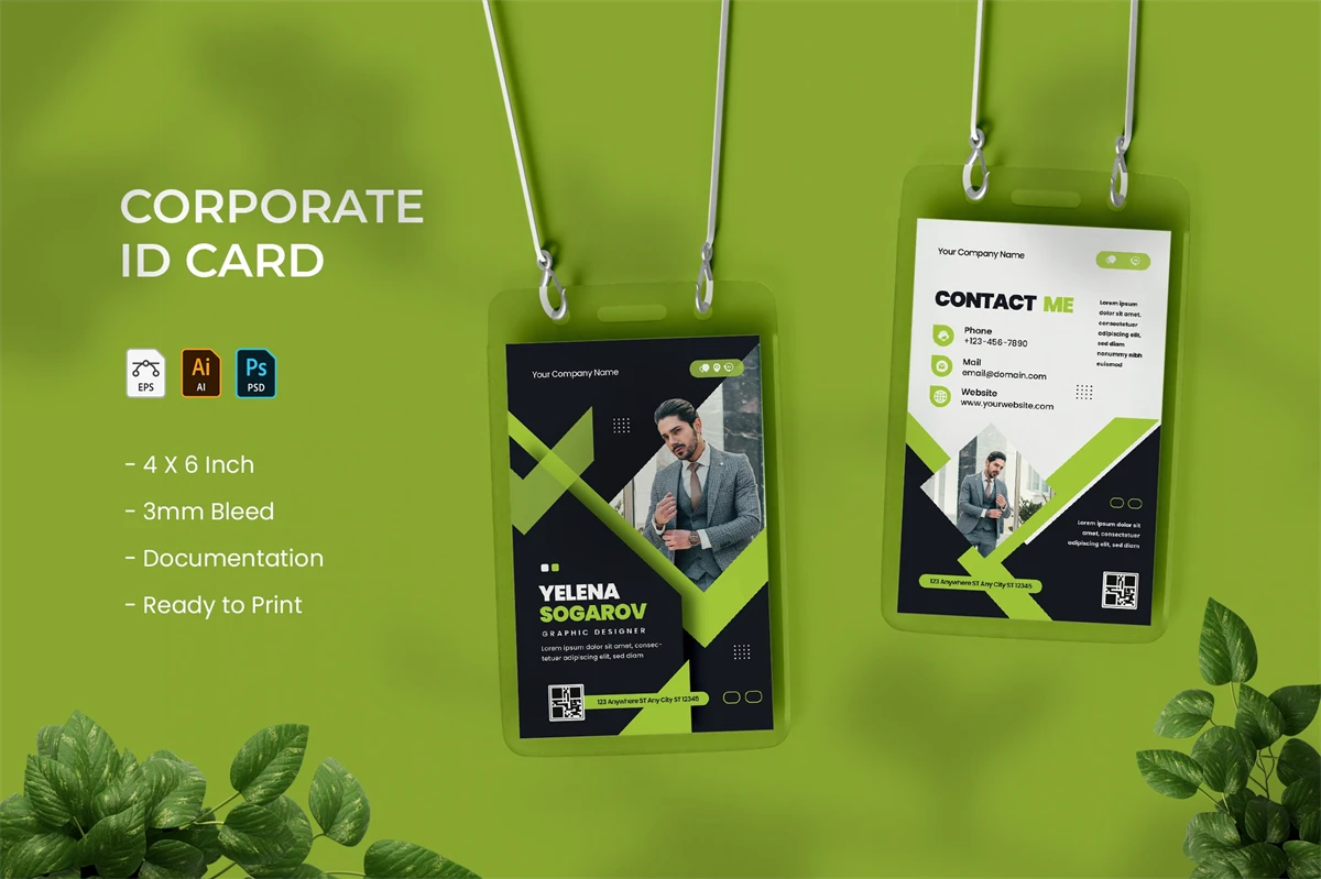This ID Card is sure to impress any potential clients. Having a modern idea and a creative layout on your id cards will make a good impression. Modifiable for your ease of comprehension Put in some text, and it will be ready to go.
