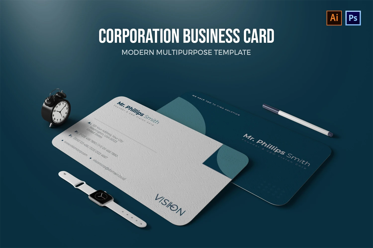 This Corporation - Business Card make your business cards look professional. You can use this business card for, identity, company business cards, Corporate Business, Creative, Blogs, Photographers, Artists, Designers, etc.