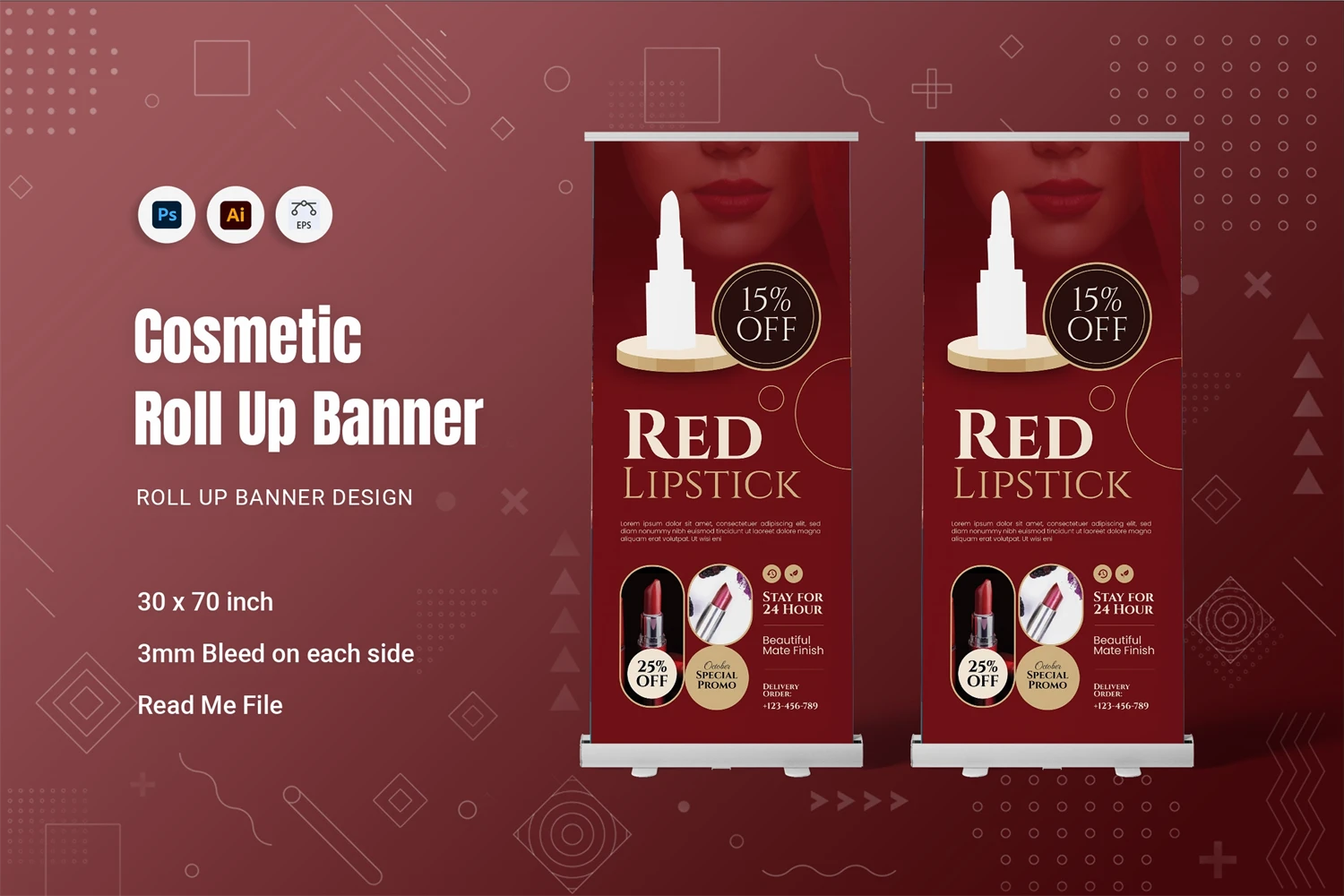 Instantly communicate your brand's through our roll-up banner template. Its standout design is optimized for the impactful presentation of visuals and content alike.