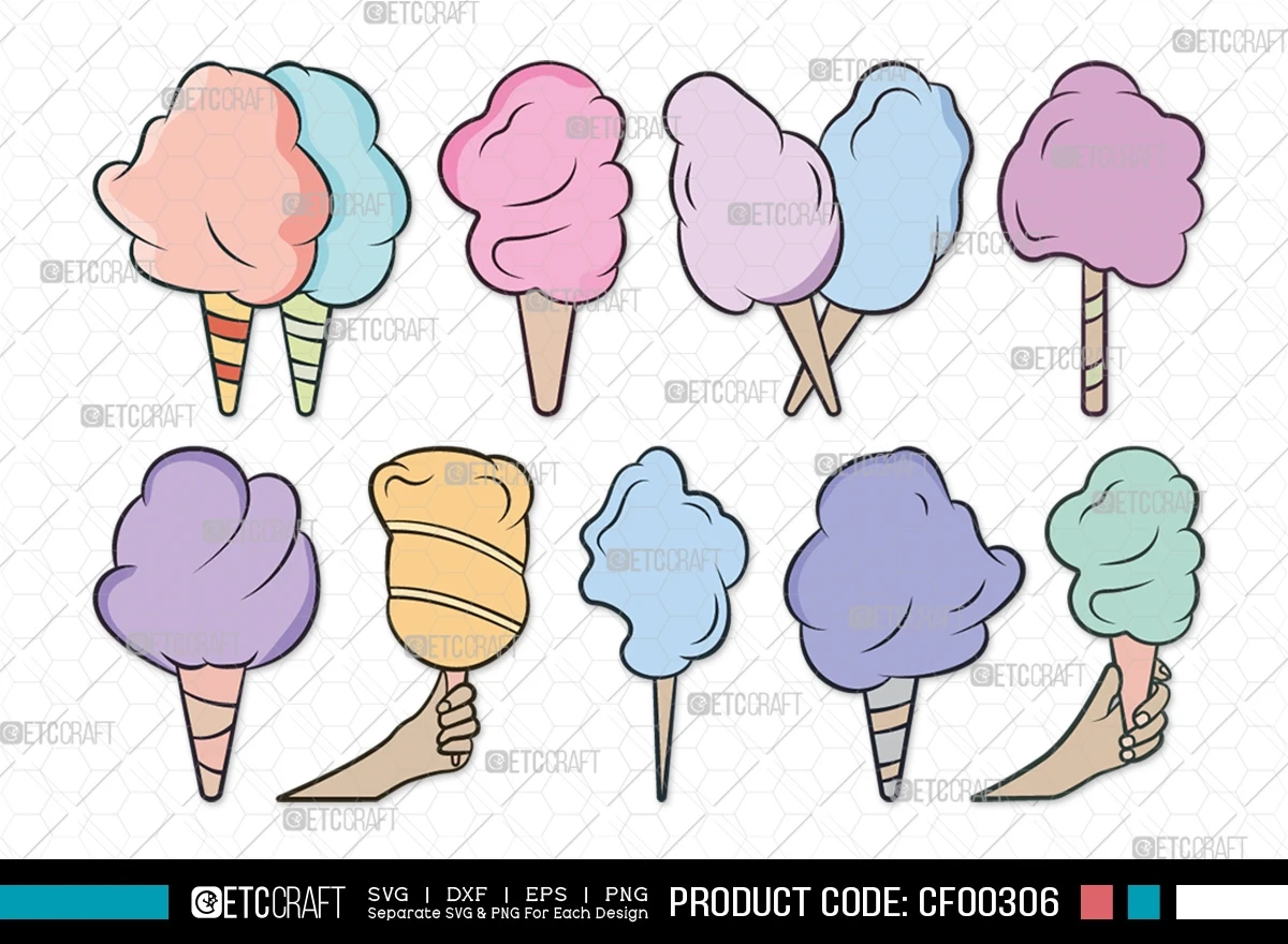 Satisfy your creative cravings with our Cotton Candy Clipart and Sweet Fairy Floss SVG Cut File Bundle. These whimsical and delightful designs will add a touch of sweetness and fun to your work, whether it's for event materials, confectionery-themed designs, or any creative endeavor related to sweet treats. Download now and let your creativity shine!