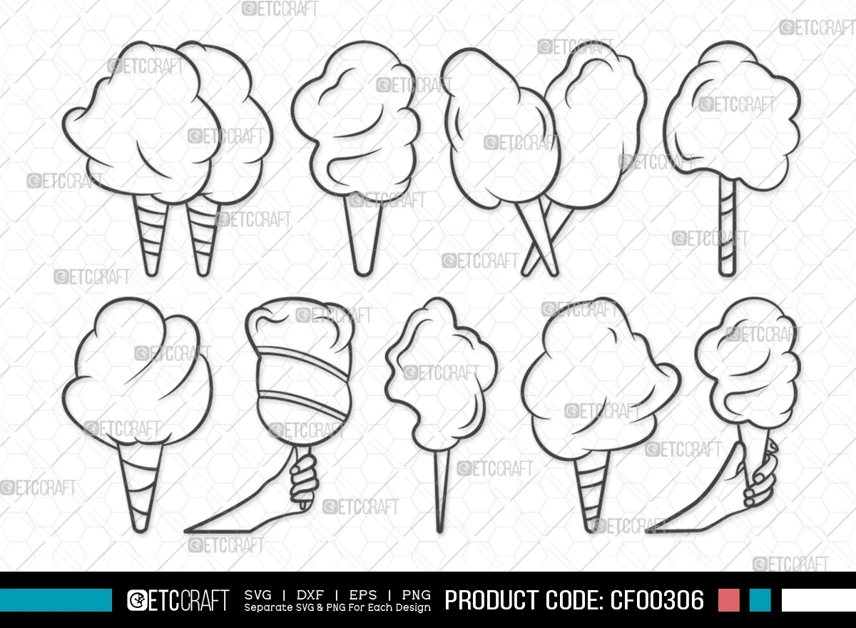 Satisfy your creative cravings with our Cotton Candy Outline and Sweet Fairy Floss SVG Cut File Bundle. These clean and delightful designs will add a touch of sweetness and fun to your work, whether it's for event materials, confectionery-themed designs, or any creative endeavor related to sweet treats. Download now and let your creativity shine!