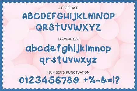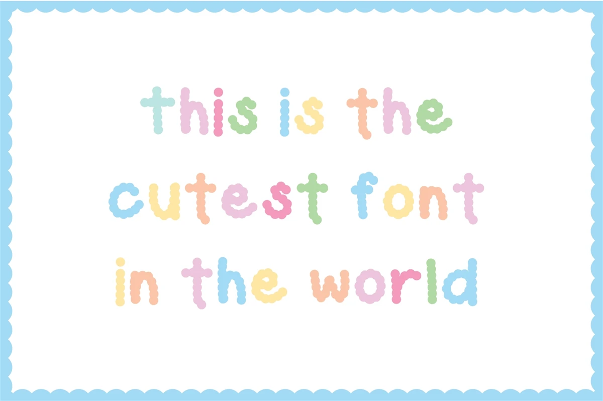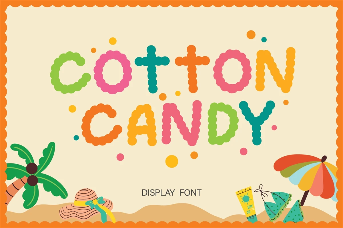 Cotton Candy is a cute and fluffy display font that can make your project be the cutest! Easy to use, not too thin, and not too thick. It is the best choice for creating eye-catching logos, branding materials, quotes, any childrens activity or school project.