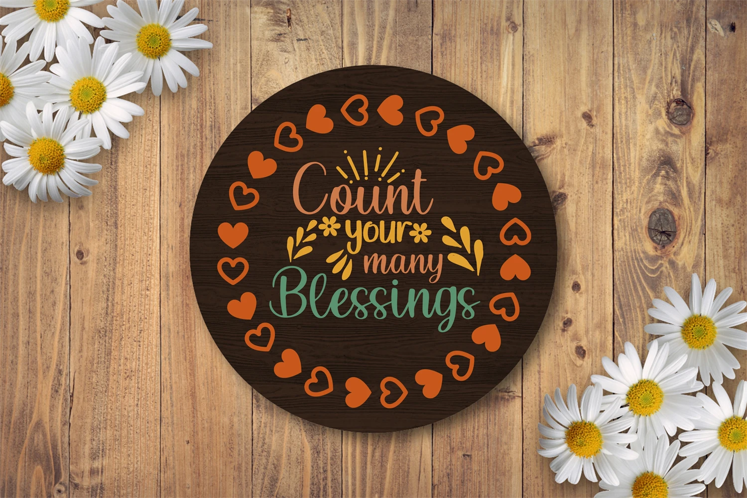 COUNT YOUR MANY BLESSINGS Round Sign SVG Design