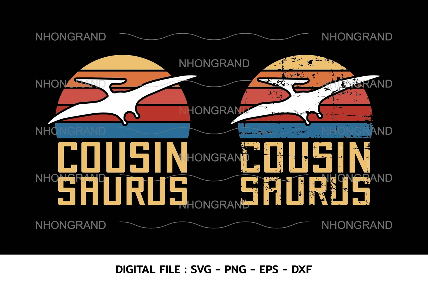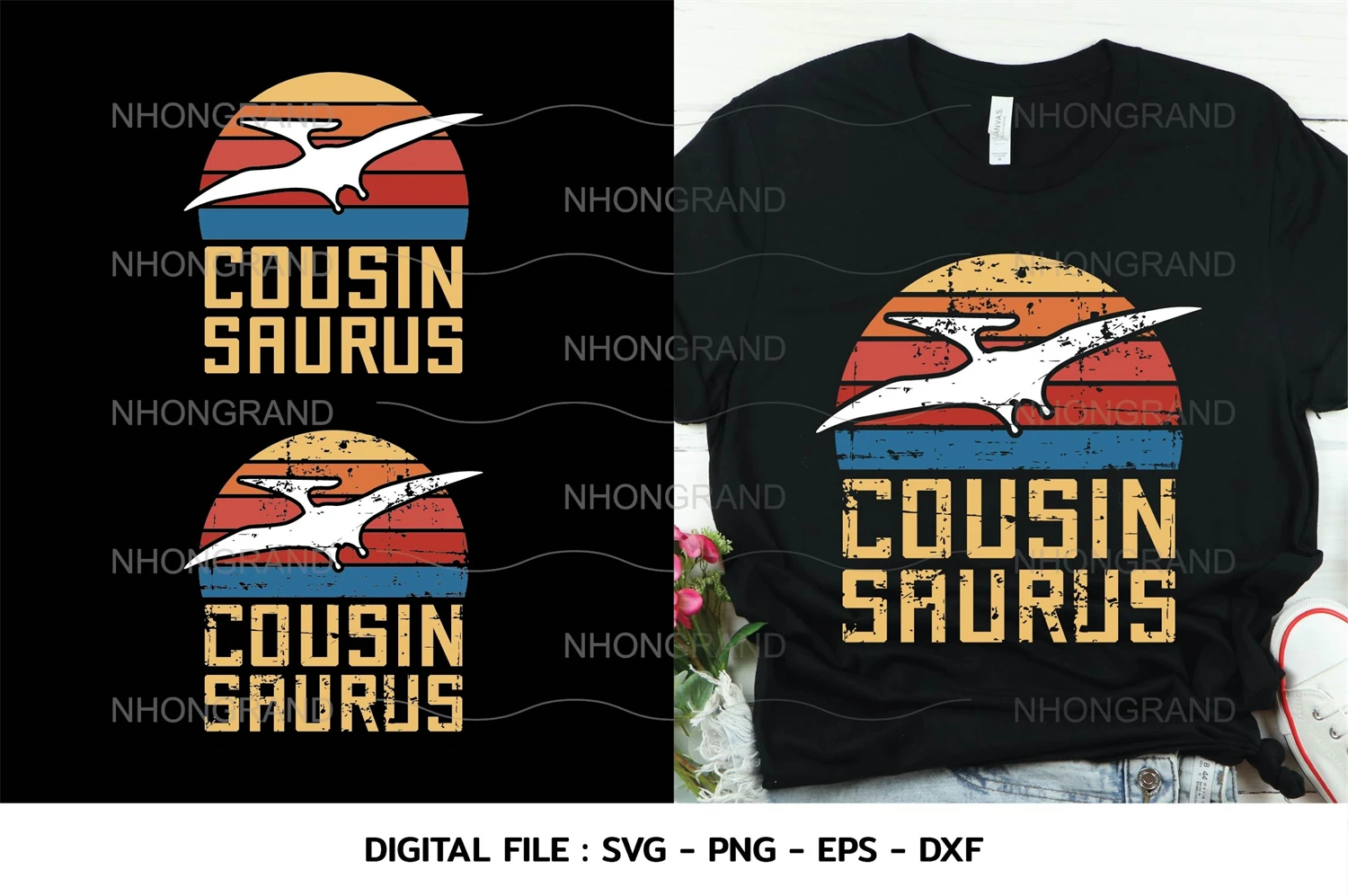 Cousin saurus with dinosaur Pteranodon vintage retro gift for cousin and family t-shirt, Cricut Files, svg, png, eps, dxf, Instant Download