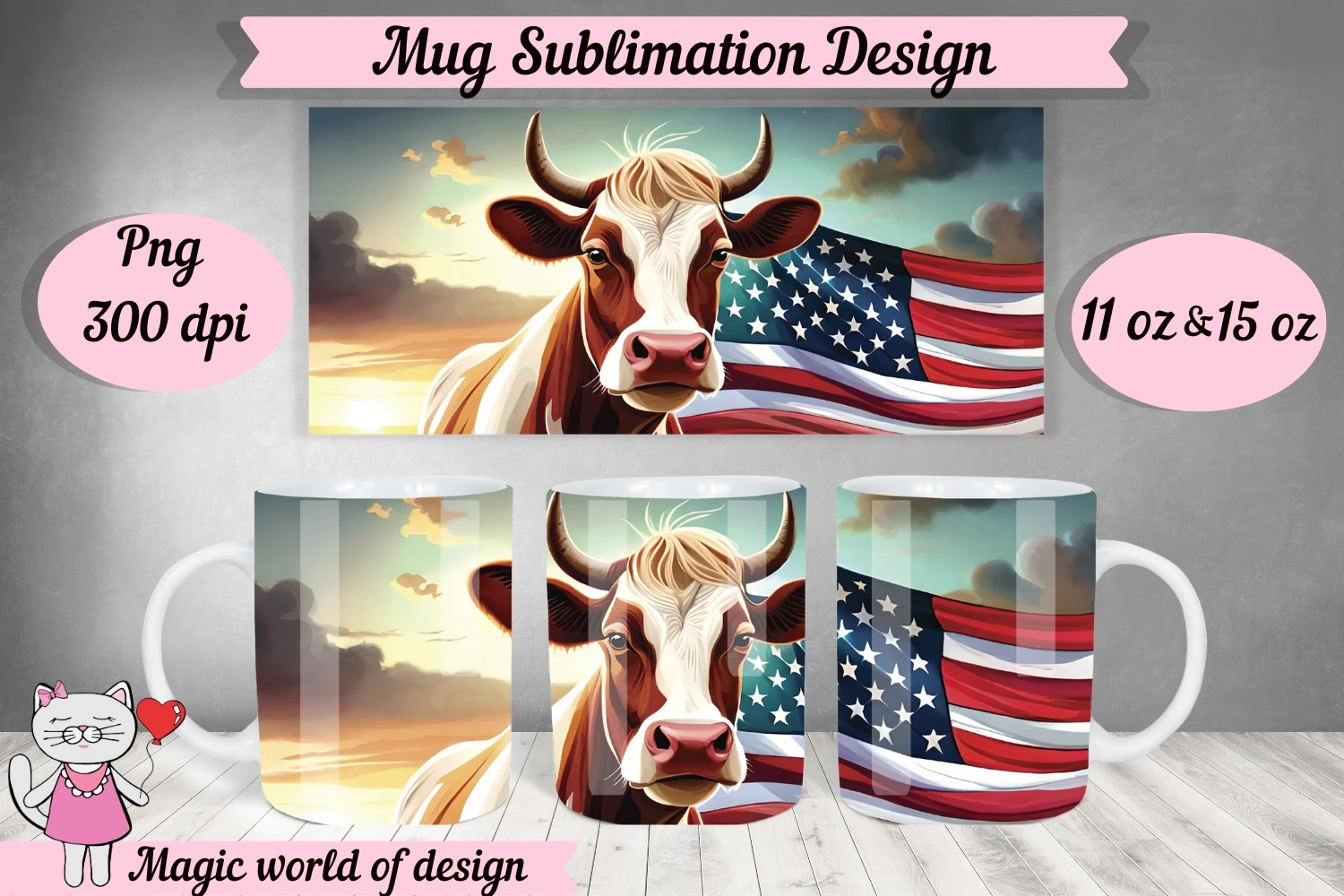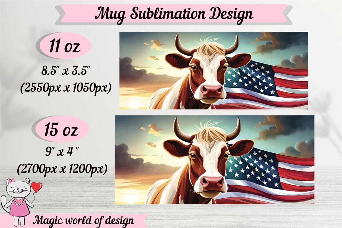 Cow American Flag Sublimation PNG for mug 11oz & 15oz mug