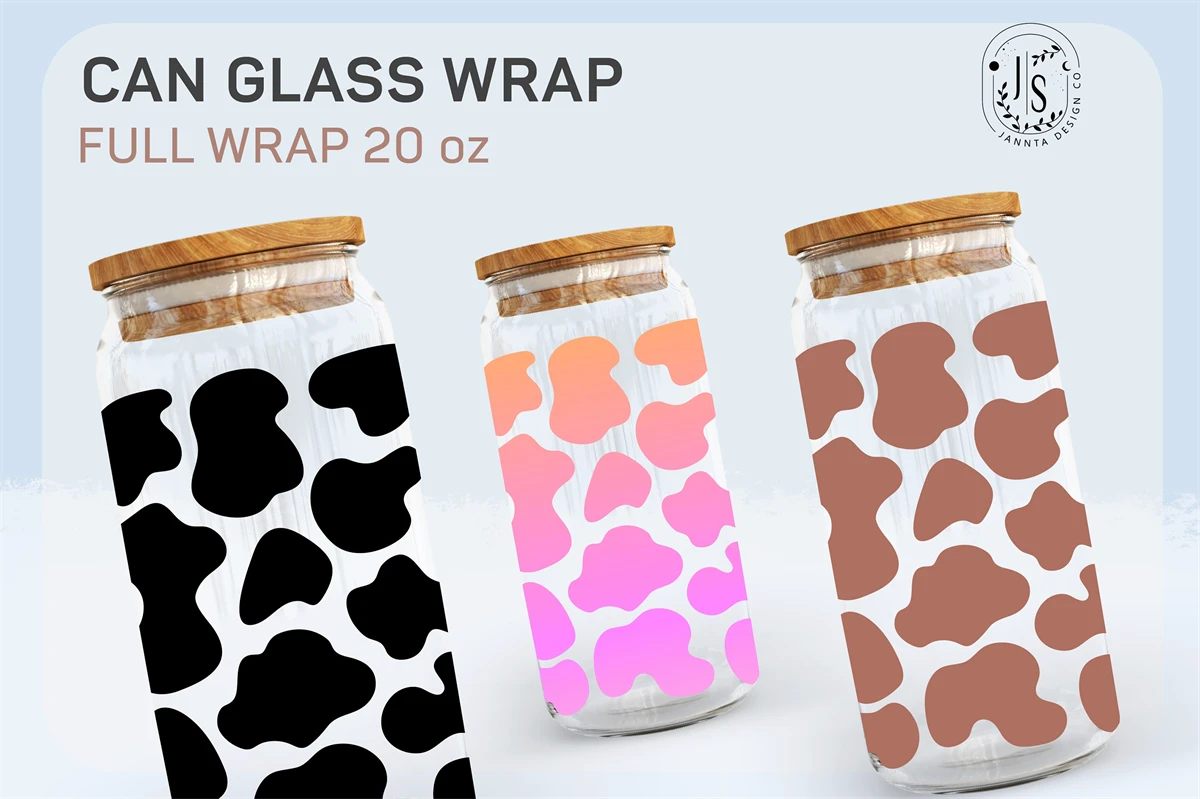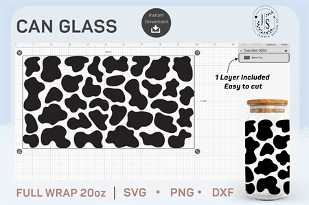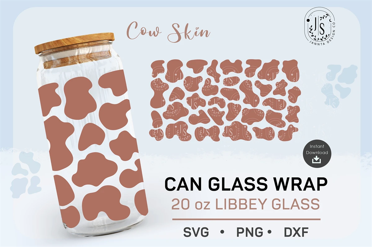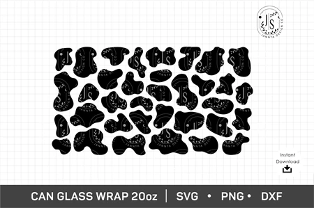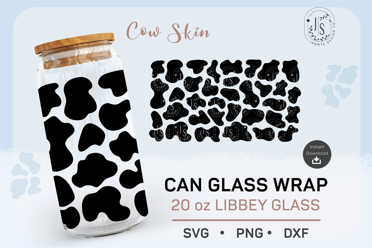 Cow Print SVG 20oz, Animal Skin SVG, Can Glass Wrap SVG, Full Wrap for Can Glass, Seamless Wraps, PNG Digital Download Template