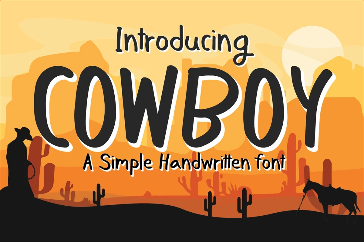 Cowboy is a beautiful and neat handwritten font, perfect for making your designs stand out from the crowd. Its characters are perfect for wall displays, wedding invitations, social media post logos, advertisements, product packaging, product designs, labels, photography, watermarks, invitations, stationery, and any project that requires modern typography.
