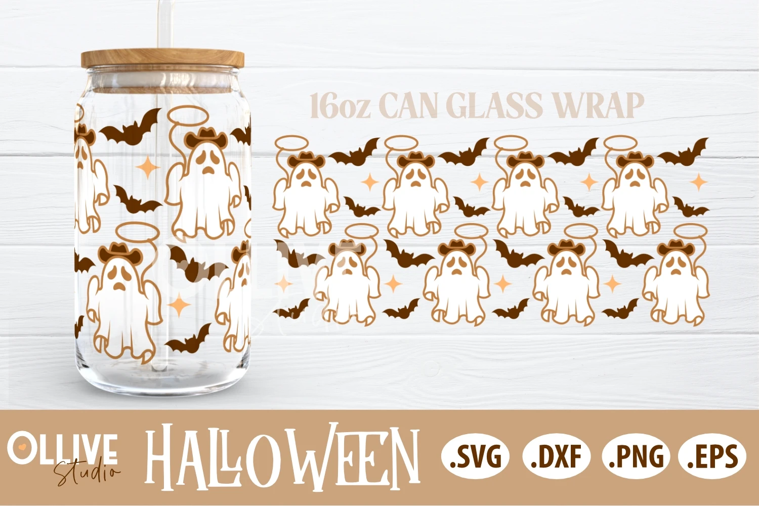 Cowboy Ghost Halloween 16oz Can Glass Wrap SVG