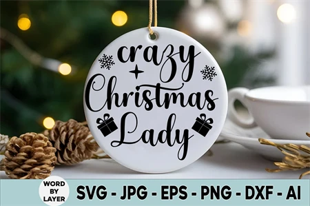Crazy Christmas Lady Funny Christmas Ornament SVG Design