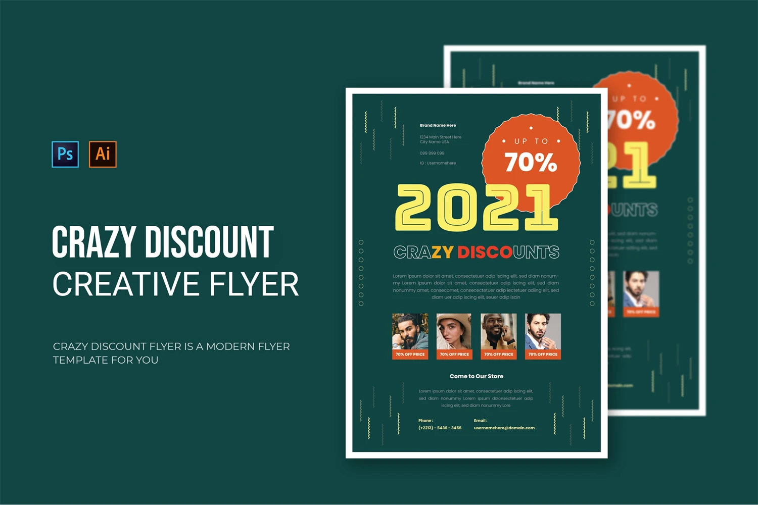 Crazy Discount 2021 - Flyer. This Flyer template is designed for your company's business needs. very clean and elegant, and also easily edited and adjusted to your liking