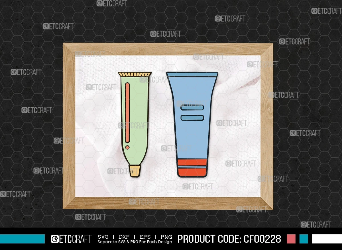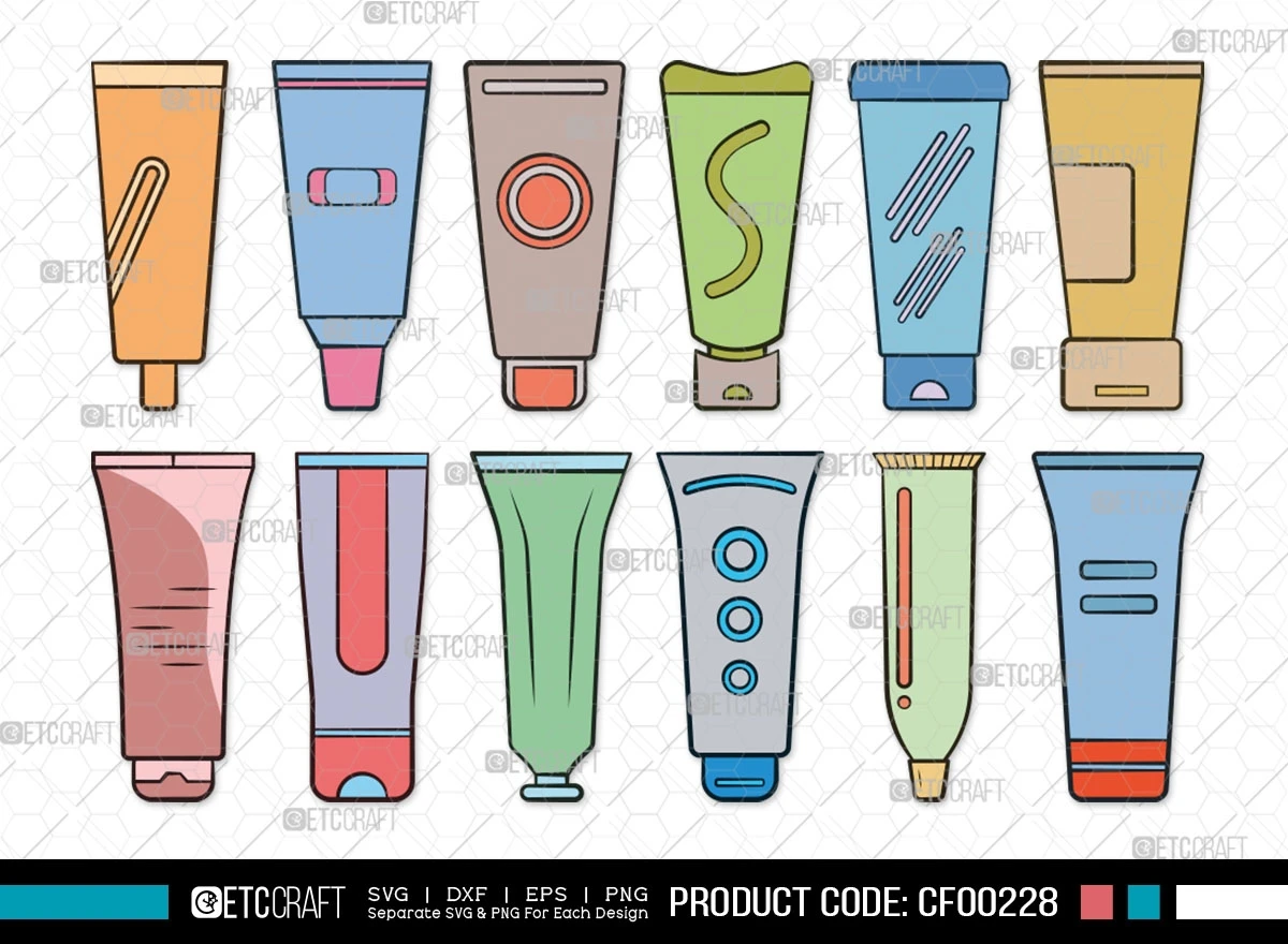 Discover endless possibilities for your design projects with the Cream Tube Clipart Lotion Bottle Squeeze Toothpaste Tube SVG Cut File Bundle.