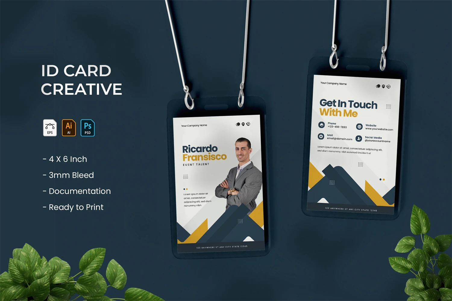 This ID Card is sure to impress any potential clients. Having a modern idea and a creative layout on your id cards will make a good impression. Modifiable for your ease of comprehension Put in some text, and it will be ready to go.