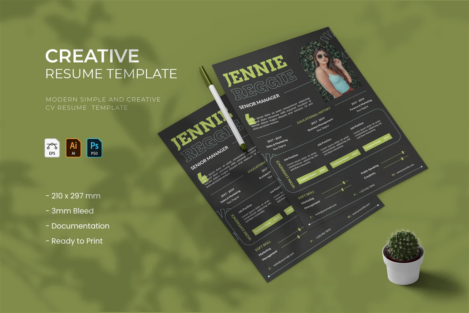 creative resume and cover letter template that will make your resume stand out from the hundreds of resumes employers get. It gives you the information you need, such as your name, contact information, social media links, education, experience, skills and interests. Also, it comes with three different color schemes.