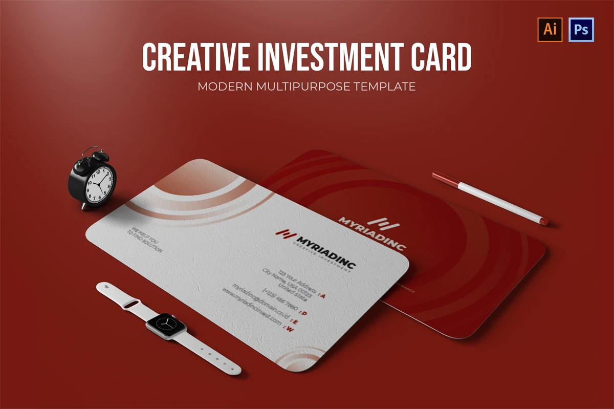 This Creative Invesment - Business Card make your business cards look professional. You can use this business card for, identity, company business cards, Corporate Business, Creative, Blogs, Photographers, Artists, Designers, etc.