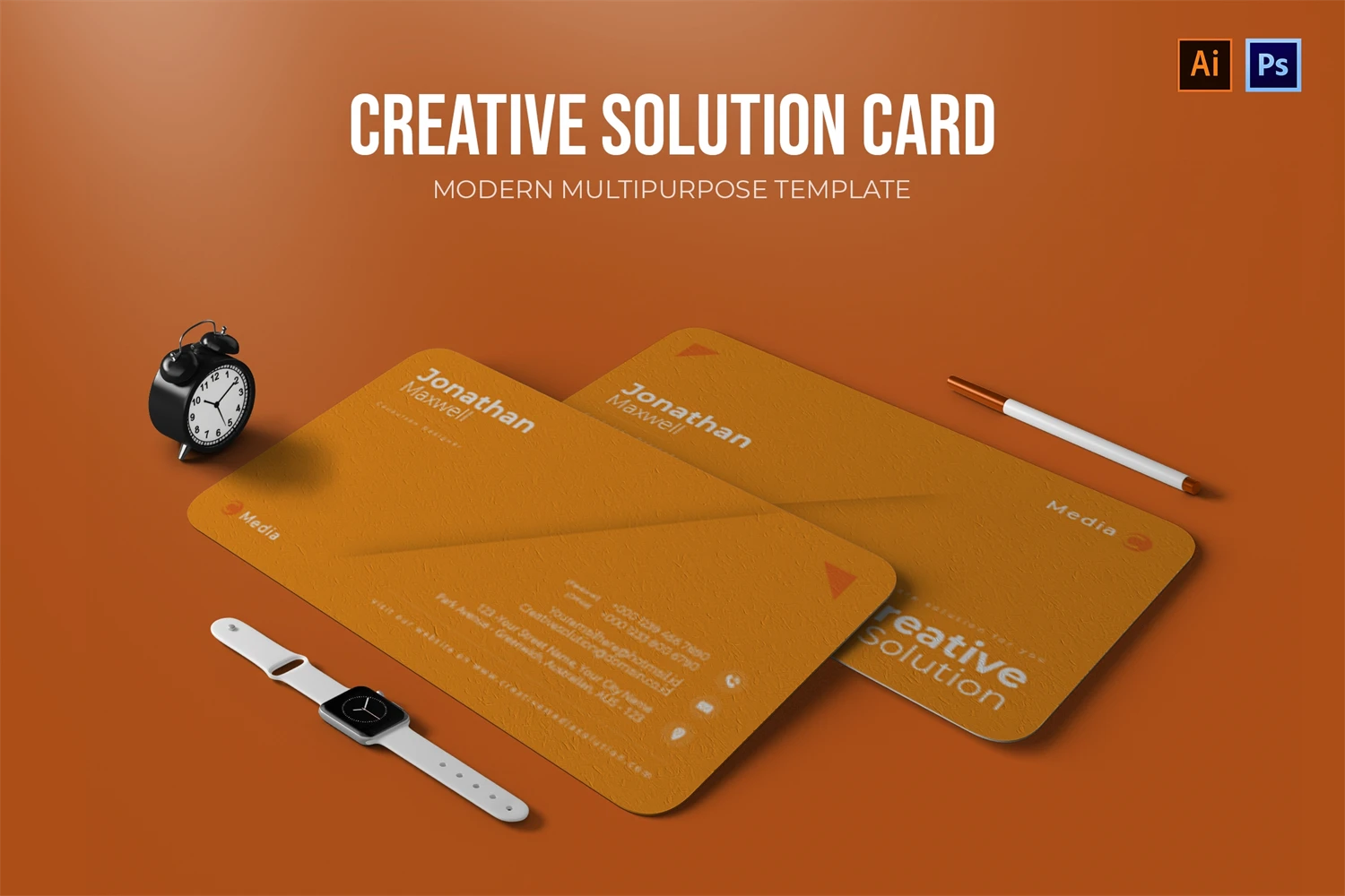 This Creative Solution - Business Card make your business cards look professional. You can use this business card for, identity, company business cards, Corporate Business, Creative, Blogs, Photographers, Artists, Designers, etc.