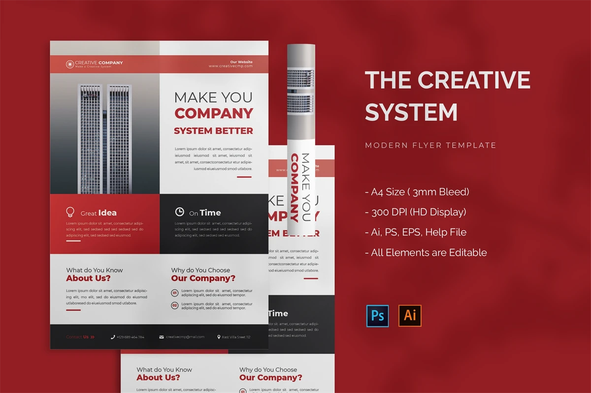 Creative System - Flyer. This Flyer template is designed for your company's business needs. very clean and elegant, and also easily edited and adjusted to your liking