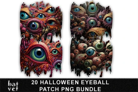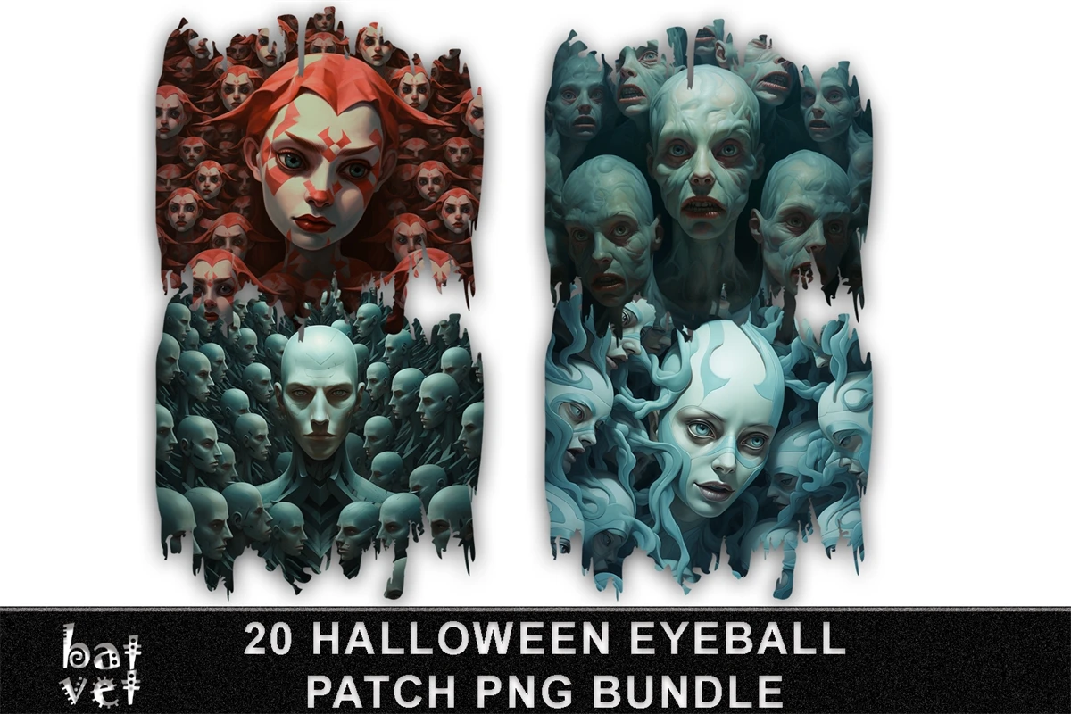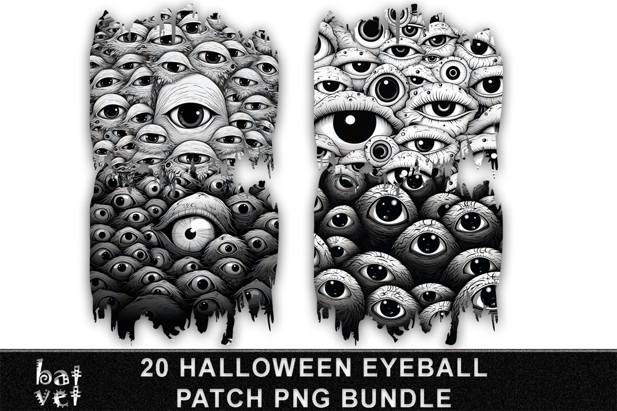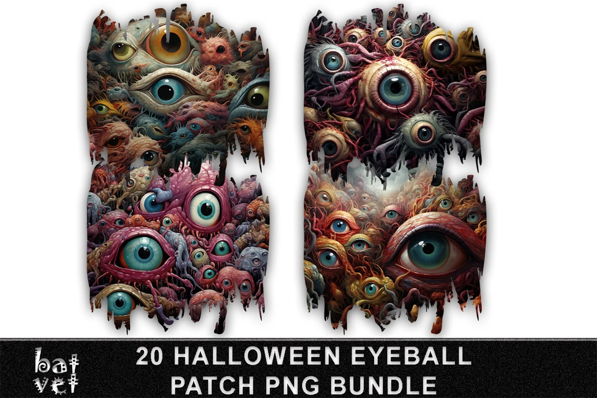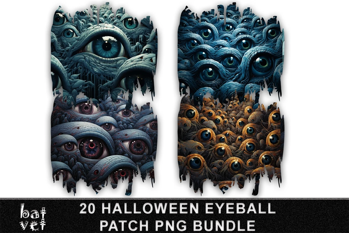 Creepy Halloween Eyeball Background Sublimation Bundle. Patches for T-Shirts, Jackets, Pillows, Tote bags. Designed for Sublimation Printing.