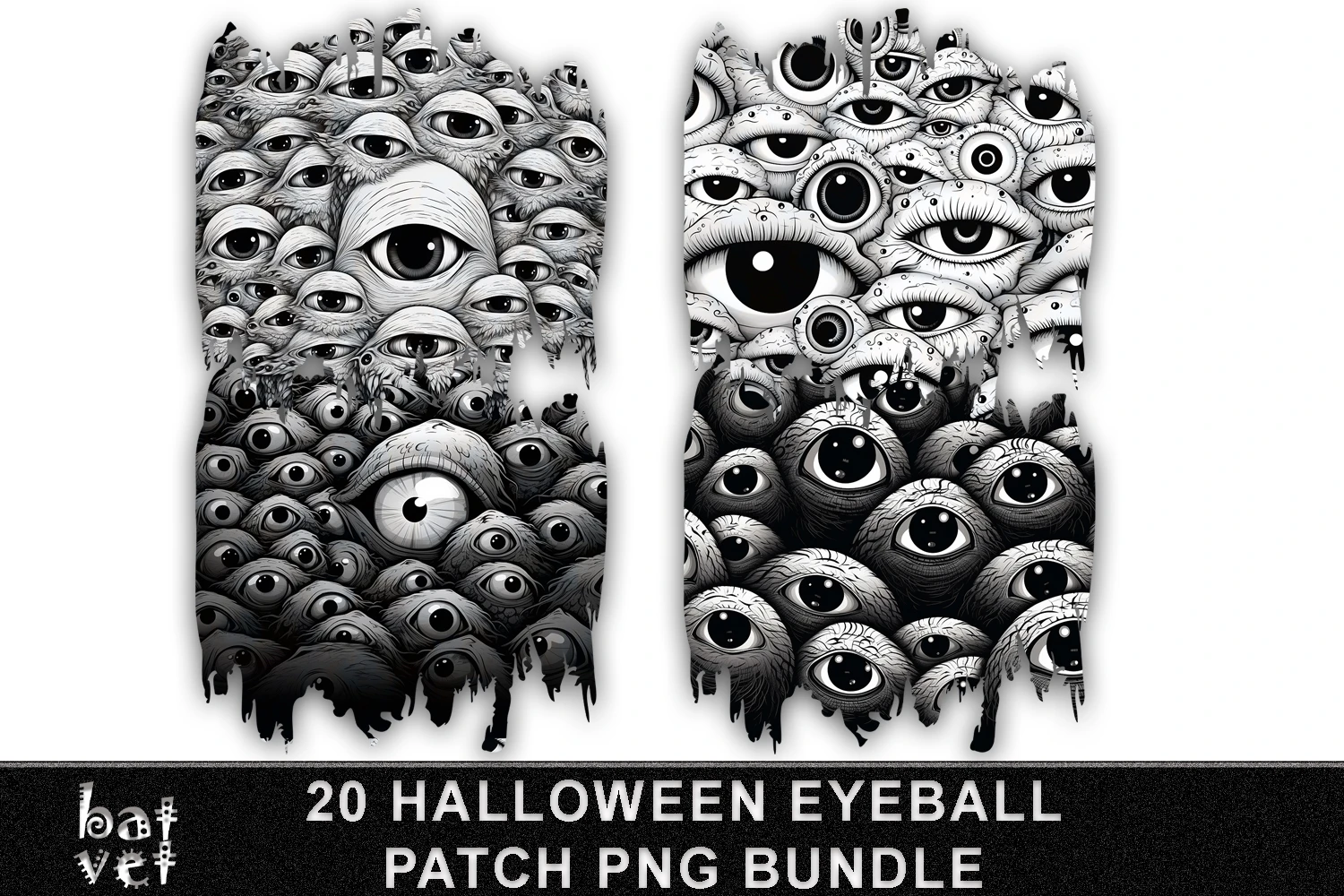 Creepy Halloween Sublimation Background Bundle / Eyeball Patch Print / 20 PNG Files