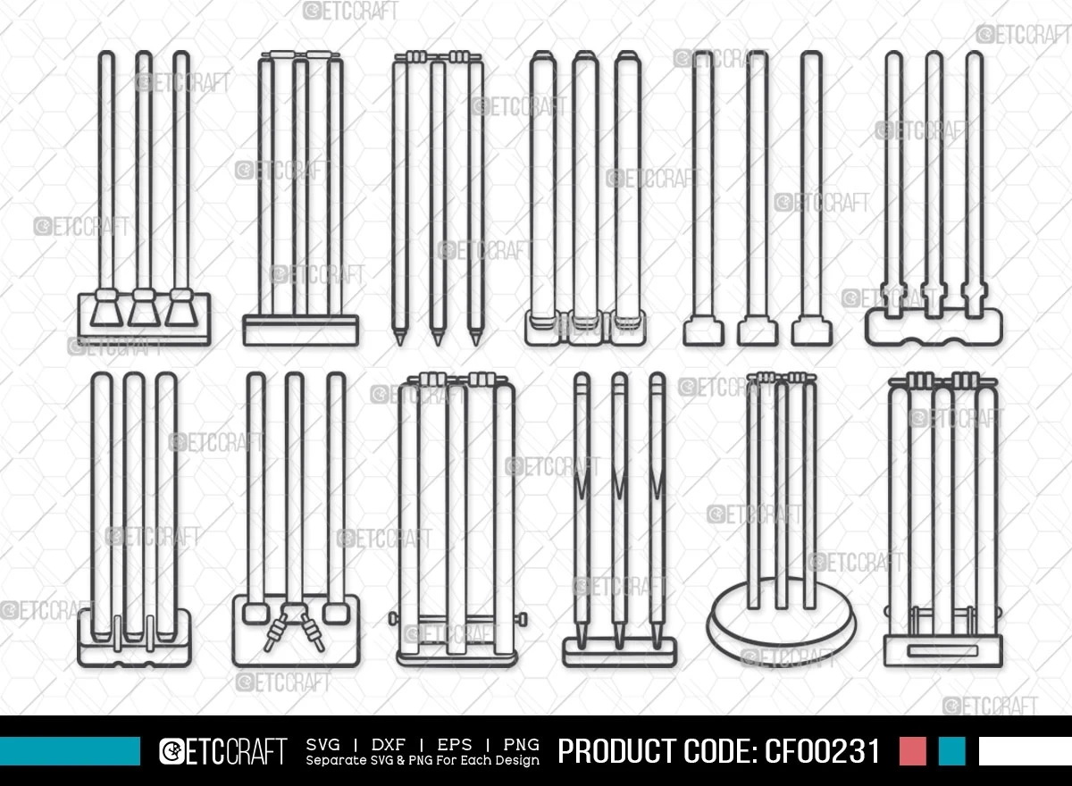Elevate your passion for cricket and sports with our Cricket Stump Outline Sports Lover SVG Cut File Bundle. Here's why this design bundle is a perfect addition to your creative collection: