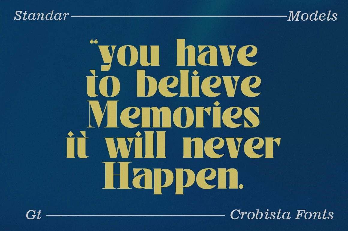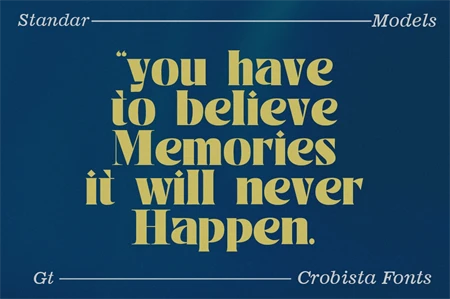 Crobista is a versatile font with a clean, sleek shape. The overall typeface is strong to bring order and harmony between letters. Best used as Instagram, poster, web design, magazine, logo or product.