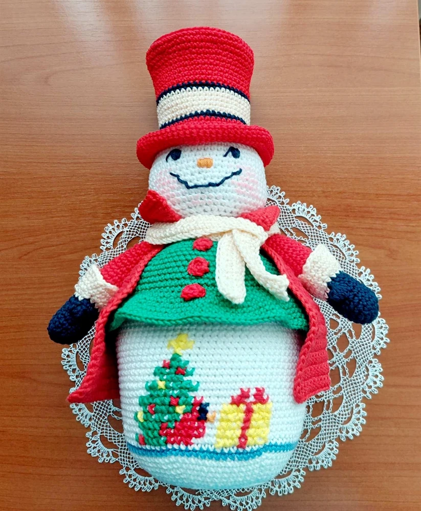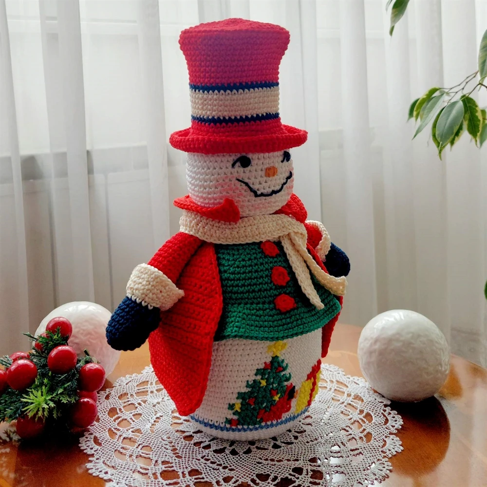 The crochet snowman doll height is approximately - 27 cm ( 10,60 inches).