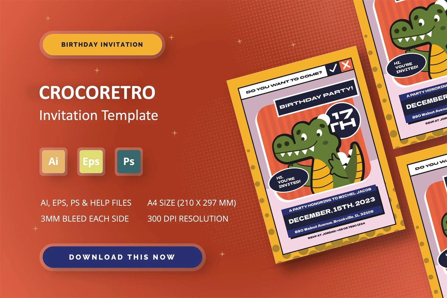 **Crocoretro - Birthday Invitation**