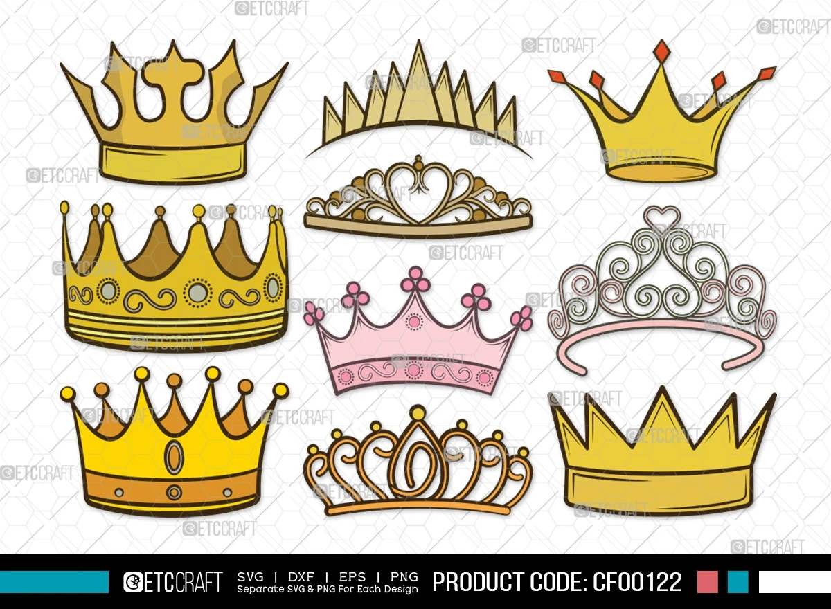 Enter the world of royalty with our Crown Clipart King Queen Tiara SVG Cut File Bundle. This collection features regal crown designs, fit for kings, queens, princes, and princesses alike. Crafted to perfection, these digital designs are ideal for adding a touch of elegance and sophistication to your creative projects. Elevate your crafts with these majestic crown designs and embrace the aura of nobility in every creation.