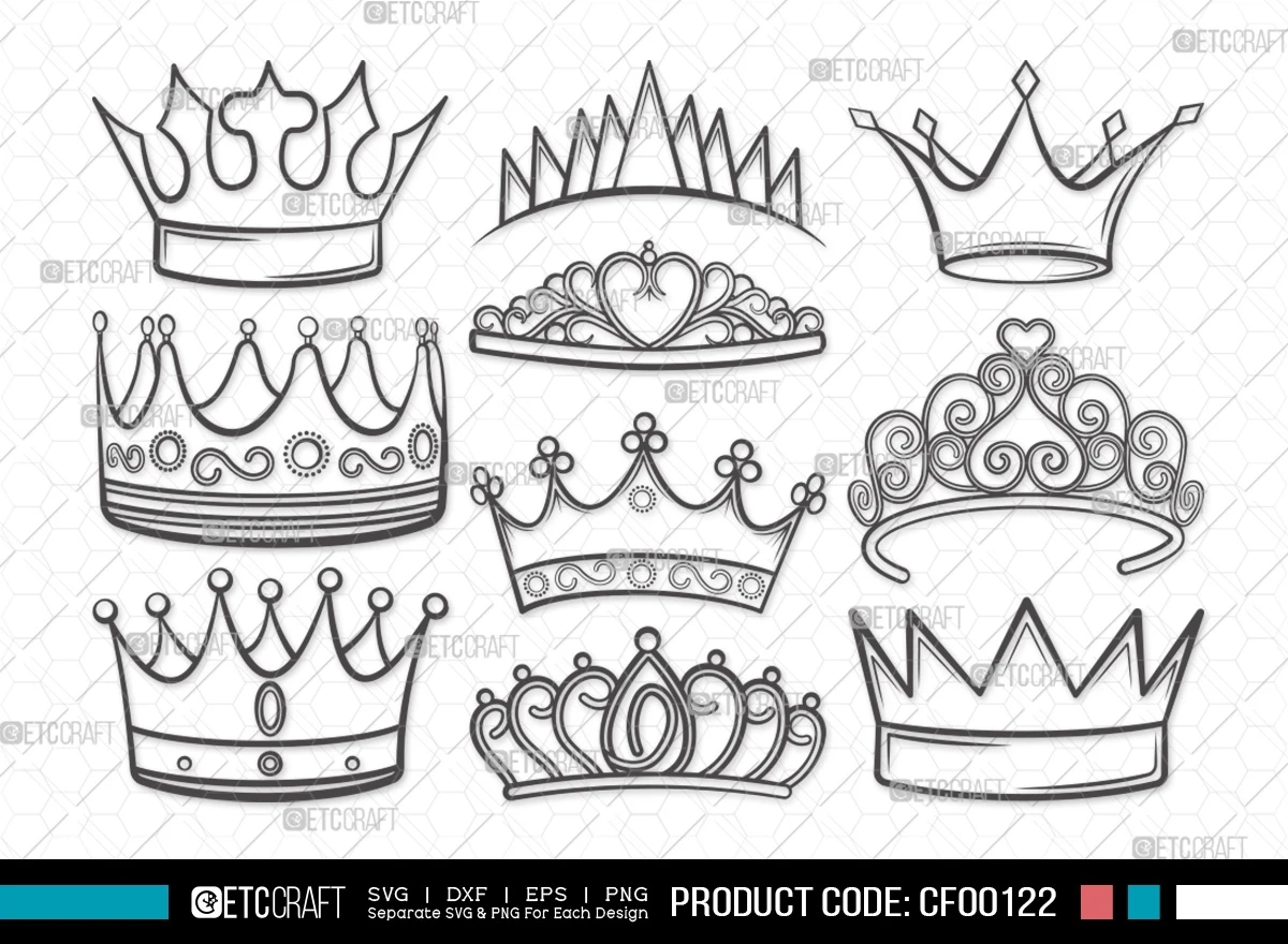 Step into a realm of royal elegance with our Crown Outline King Queen Tiara SVG Cut File Bundle. This collection features exquisite crown outlines, suitable for kings, queens, princes, and princesses. Crafted with precision, these digital designs offer a regal touch to elevate your creative projects. Embrace the grandeur of royalty and add a touch of nobility to your crafts with these crown outlines.