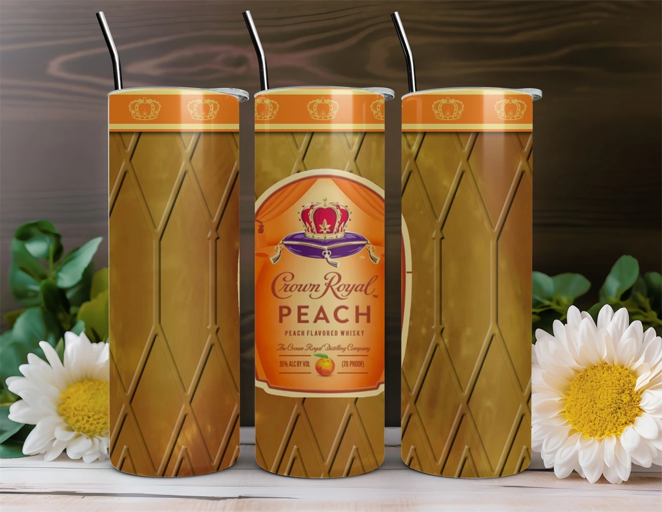 Crown Royal Peach Tumbler Png, 20oz & 30oz Skinny
