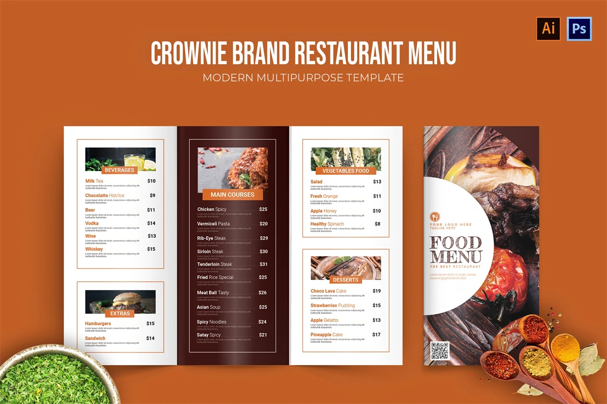 Crownie Brown - Restaurant Menu. This template is great for your business and will make your customers interested, elegant, and easily editable according to your needs, this restaurant menu is perfect for, promos, cafes, hotels, resort shops online. etc. I hope you enjoy this restaurant menu