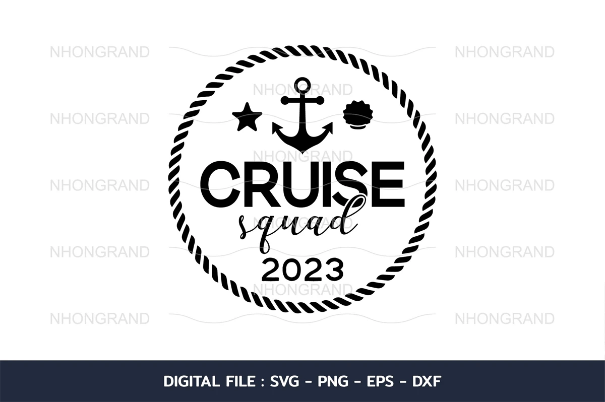 cruise squad 2023 with anchor and rope wreath svg, lover gift t-shirt, Cricut Files, svg, png, eps, dxf, Instant Download