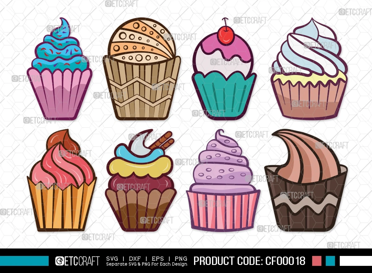Indulge your creative cravings with our Cupcake Clipart Sweet Dessert Bundle SVG Cut File. This digital design collection features a delectable assortment of cupcake-themed graphics in versatile SVG, DXF, EPS, and PNG formats. Ideal for baking enthusiasts and crafters alike, this bundle offers endless creative possibilities to add a sweet touch to your projects.