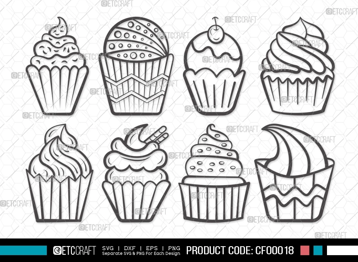 Add a touch of sweetness to your creative endeavors with our Cupcake Outline Sweet Dessert SVG Cut File Bundle. Let these delightful outlines inspire your artistic pursuits and infuse a delightful sweetness into your projects. Elevate your designs and bring the joy of baking to life in your crafting journey!