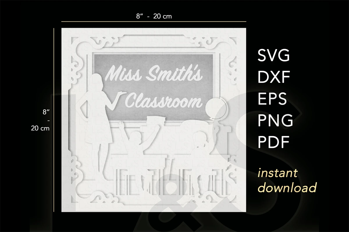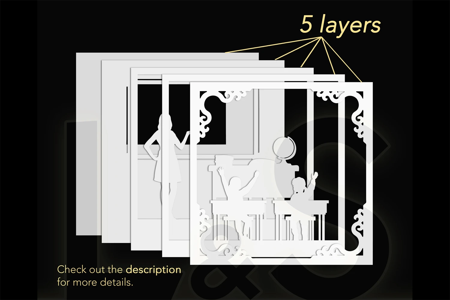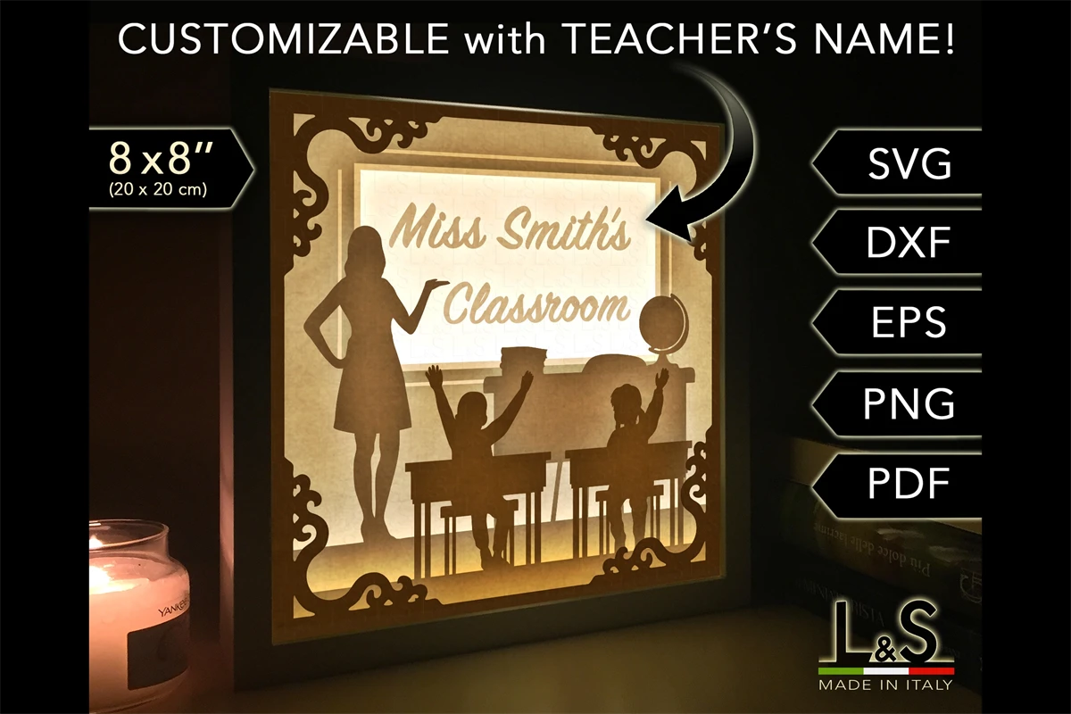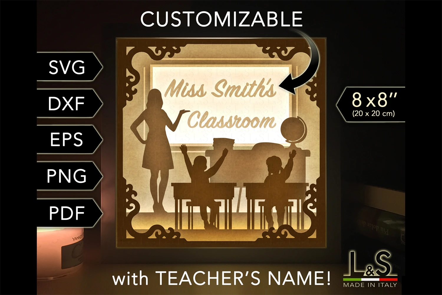Download this Customizable Female Teacher Shadow Box SVG File and create a unique paper cut Light Box in just a few minutes!