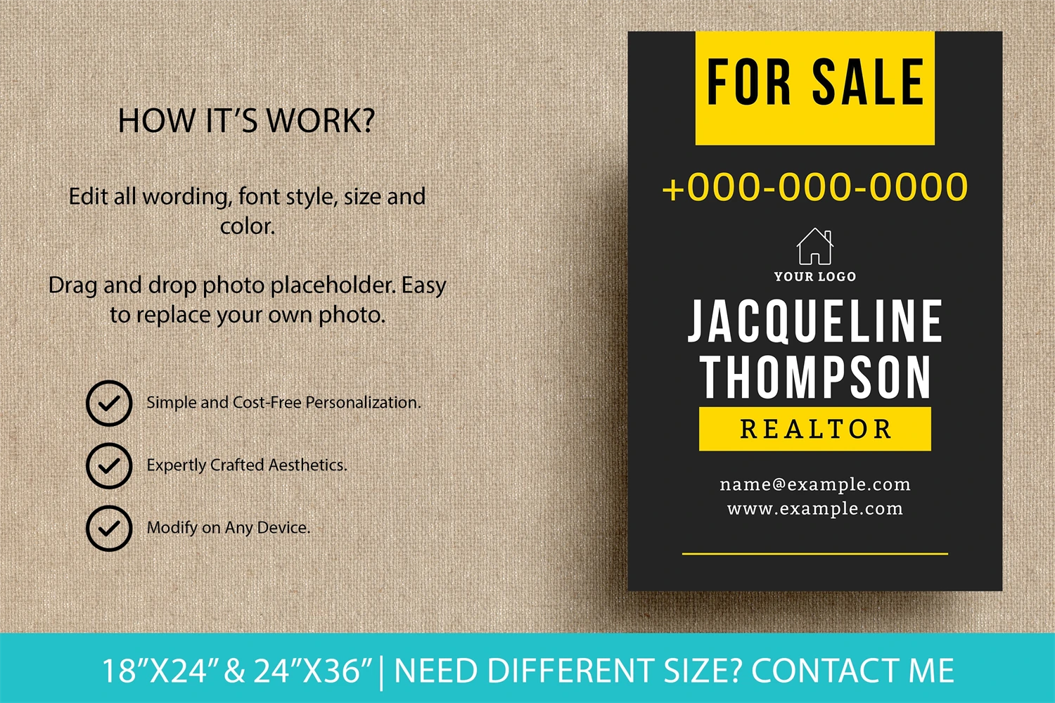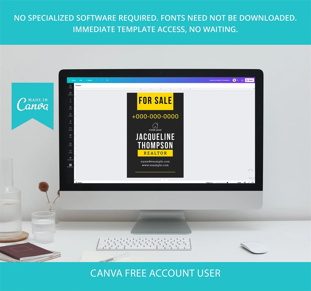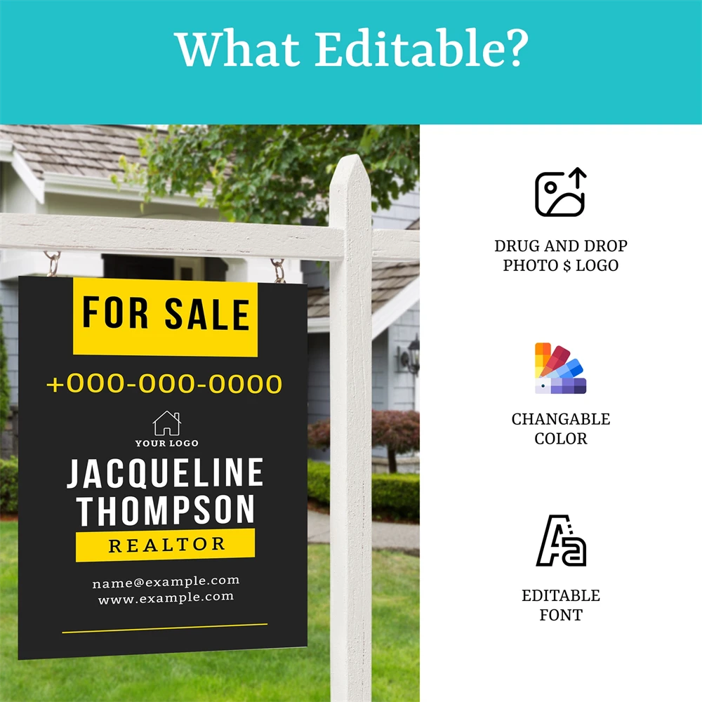 Elevate your real estate marketing with our customizable yard sign template on Canva. Create eye-catching 'For Sale' sign tailored to your brand, perfect for realtors and DIY enthusiasts.