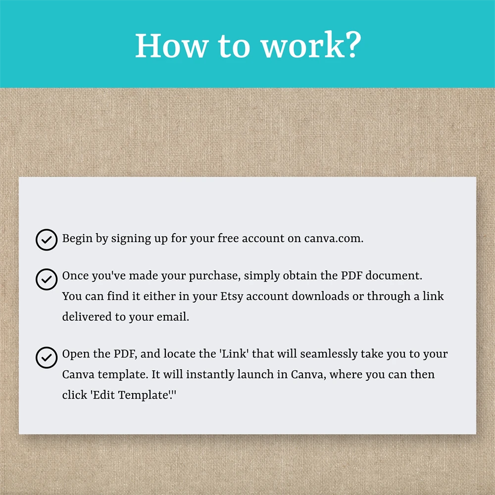 After purchasing the listing, you will receive a pdf file with canva access link.
