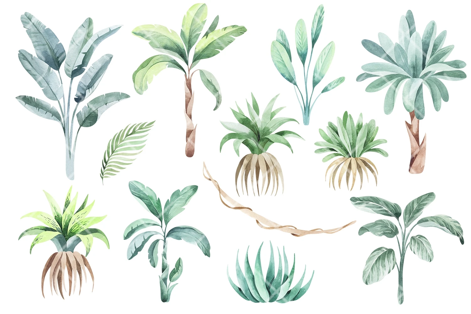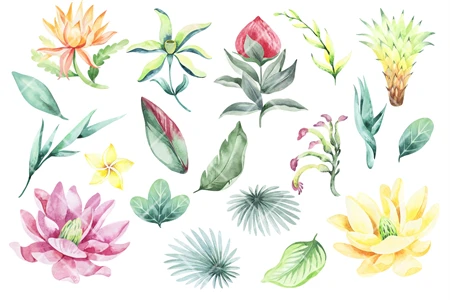 -37 ready-made individual watercolor elements of plants and flowers (PNG, transparent background, 600 dpi)