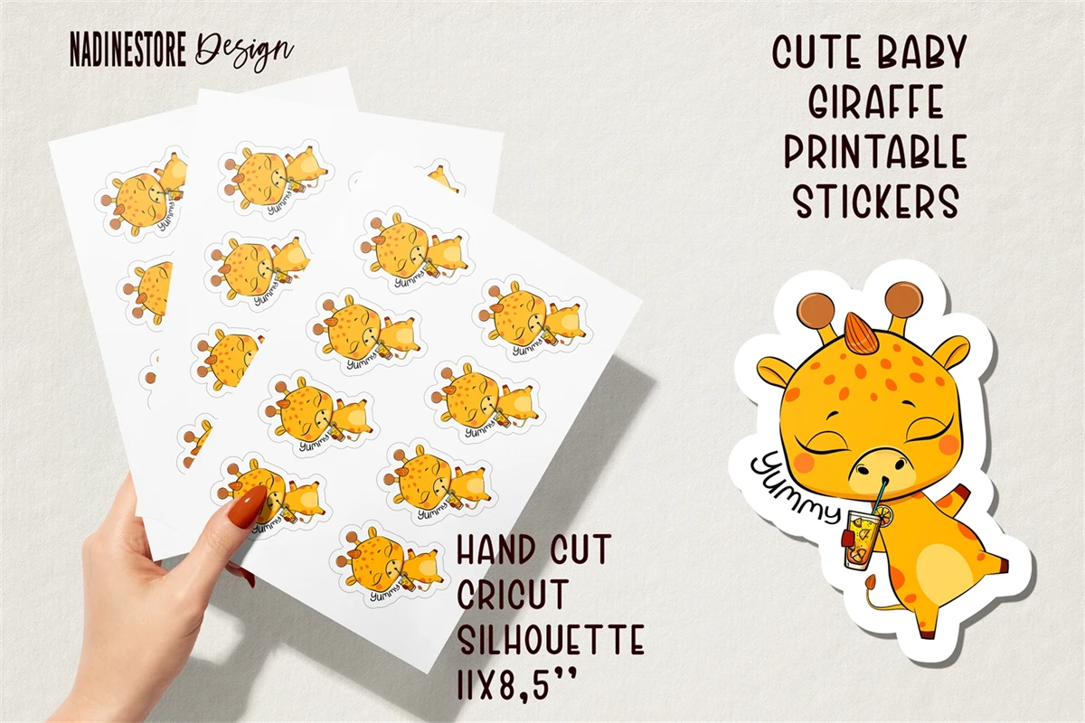 Cute baby giraffes printable stickers. PNG.