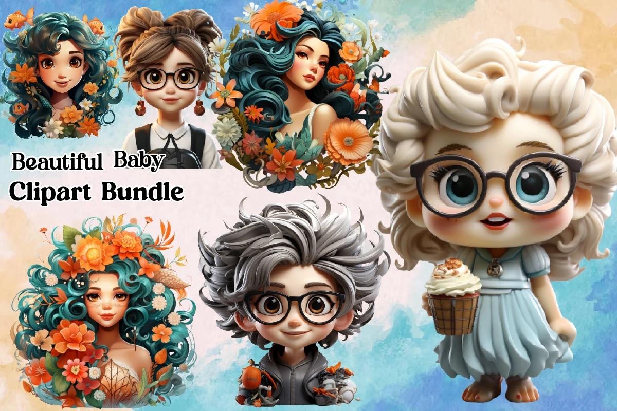 Watercolor Cute baby Clipart PNG Clipart Bundle