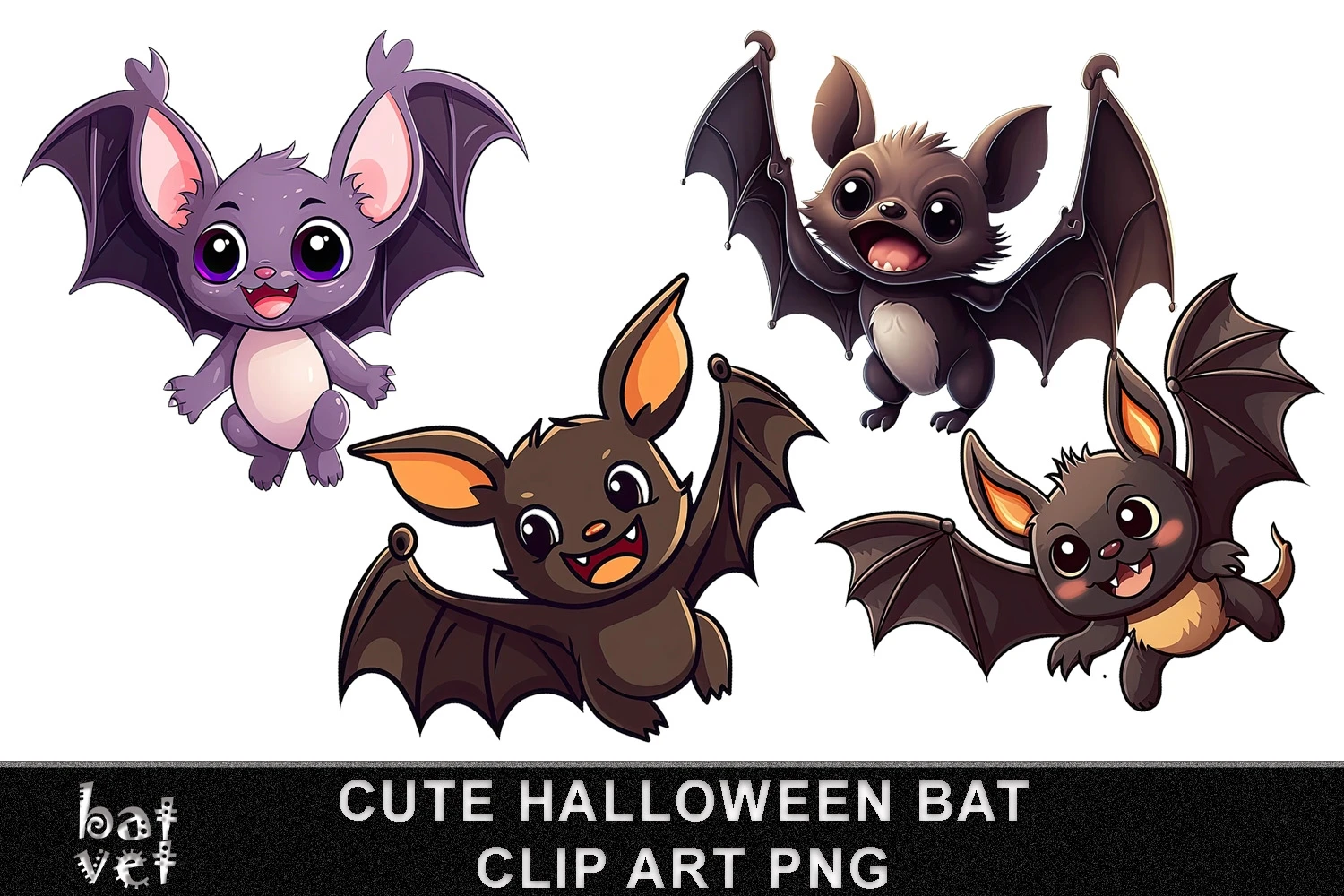 Cute Bat Clipart PNG / Halloween Bat Illustration / Bat Patch