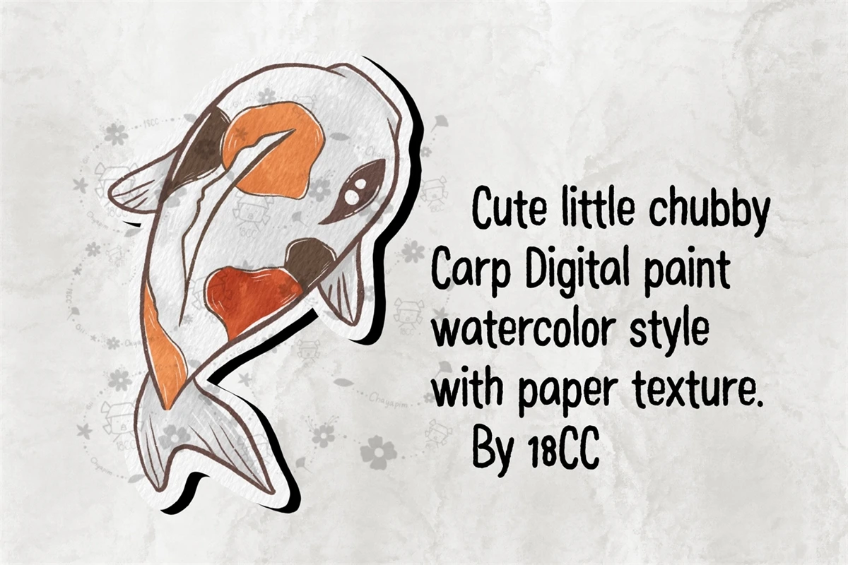 Cute little chubby Carp. Digital paint watercolor style with paper texture. Decoration for any design. Illustration about Fish.