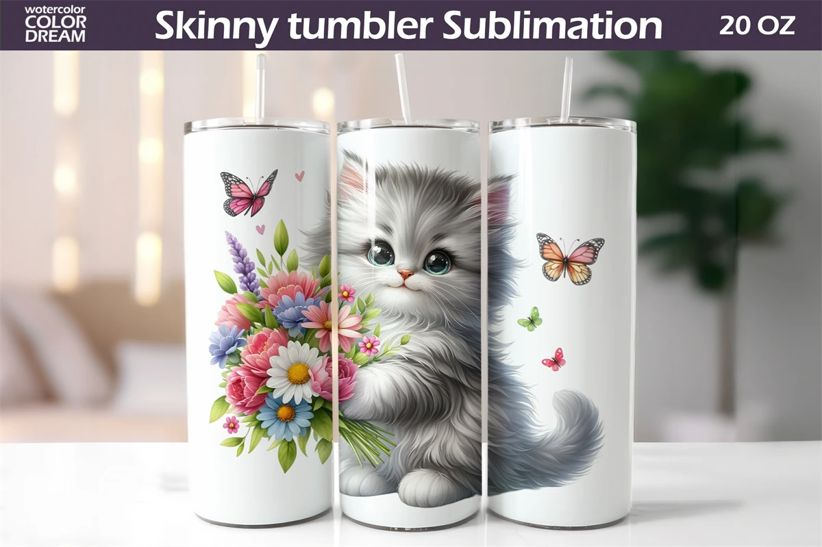 Cute Cat Flowers Tumbler I Fluffy Kitty Wildflowers Tumbler
