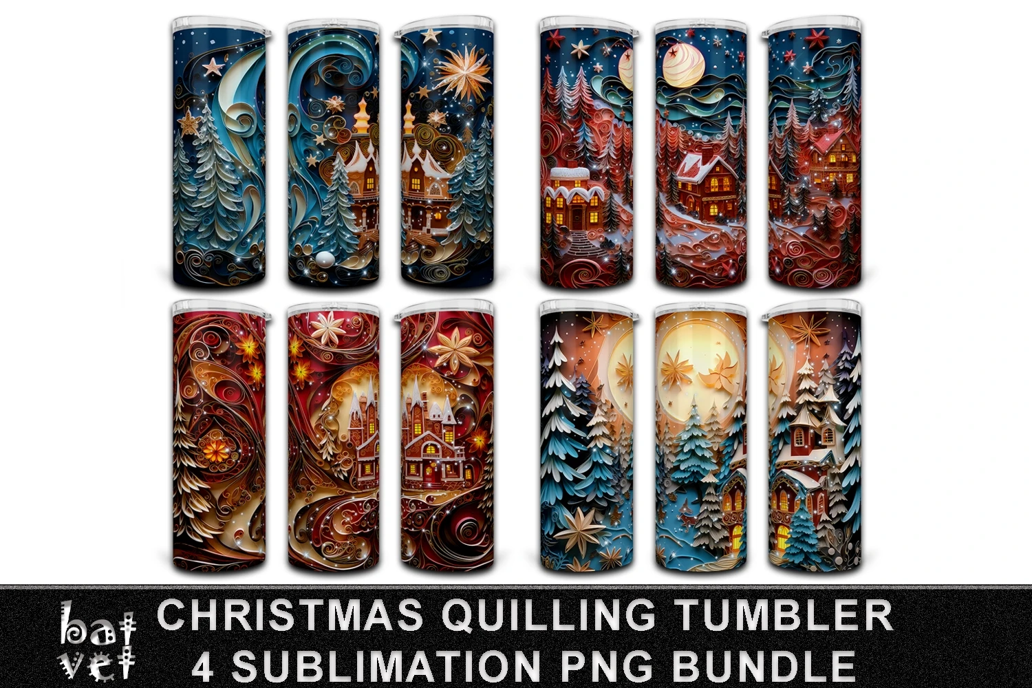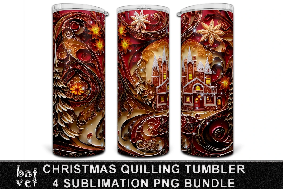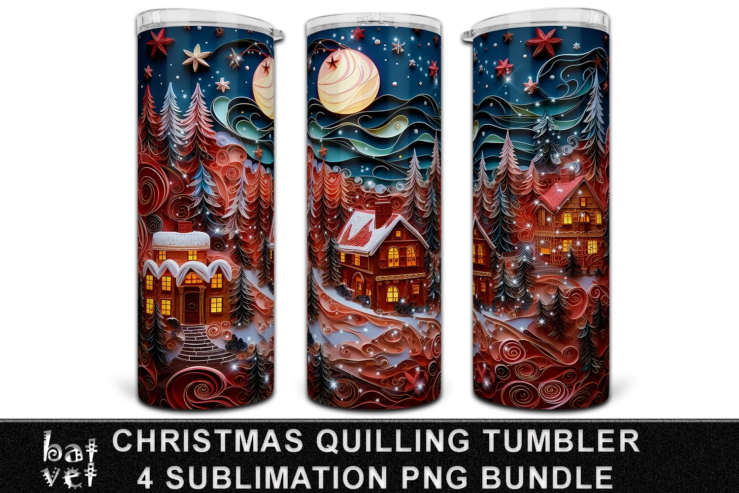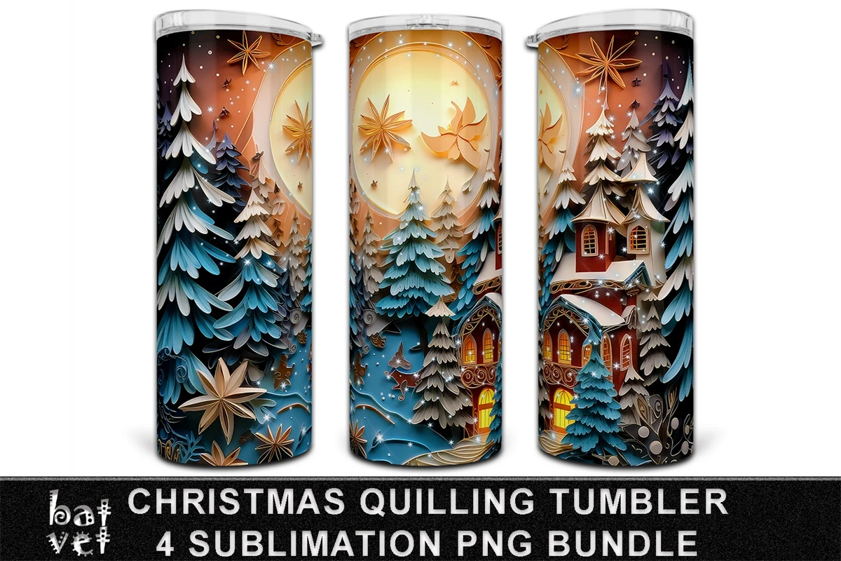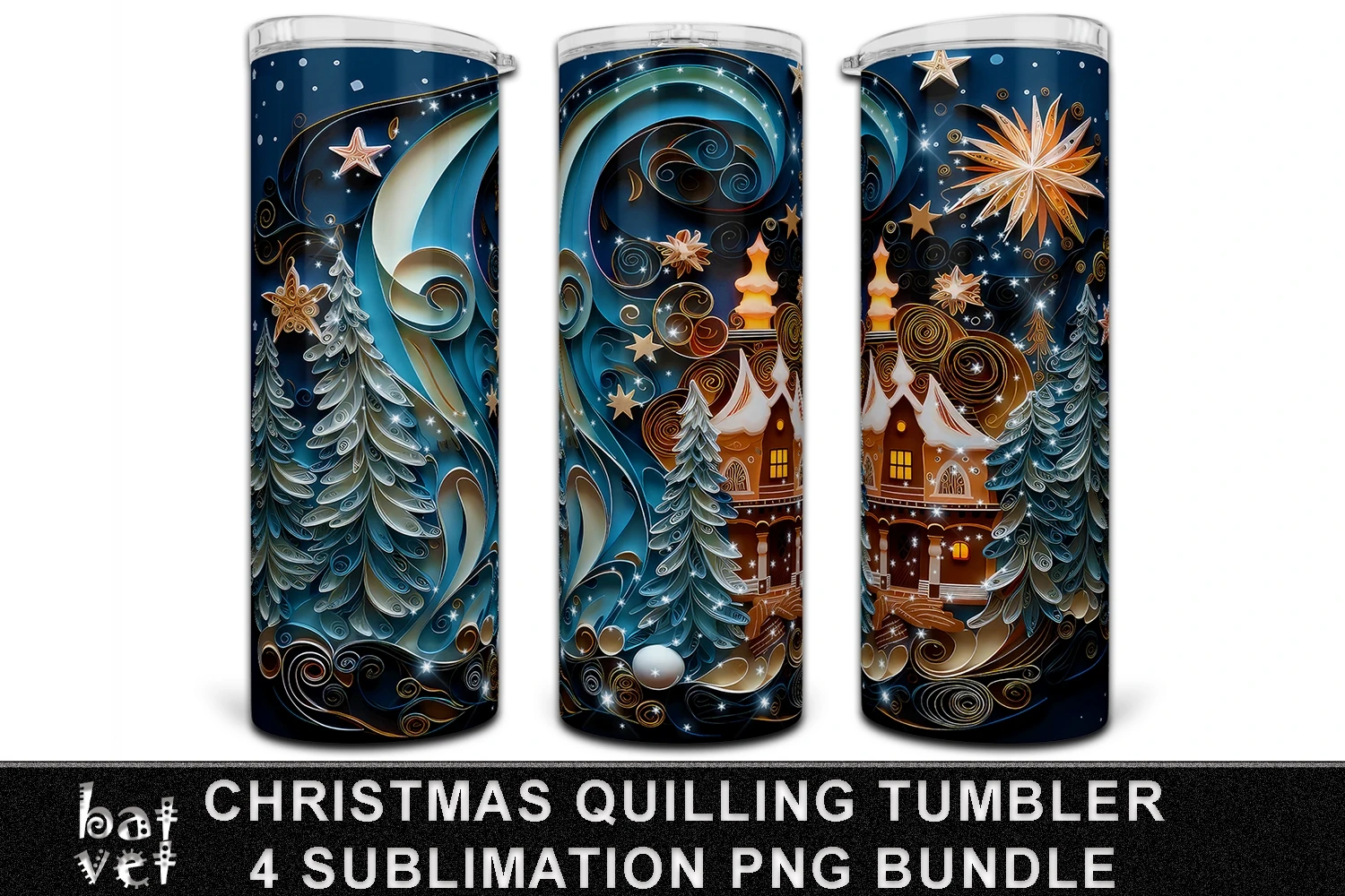 20 Oz Tumbler Wrap Design, Paper Quilling, Christmas Eve, Sparkles, Chrsitmas Trees and Christmas Star Sublimation.
