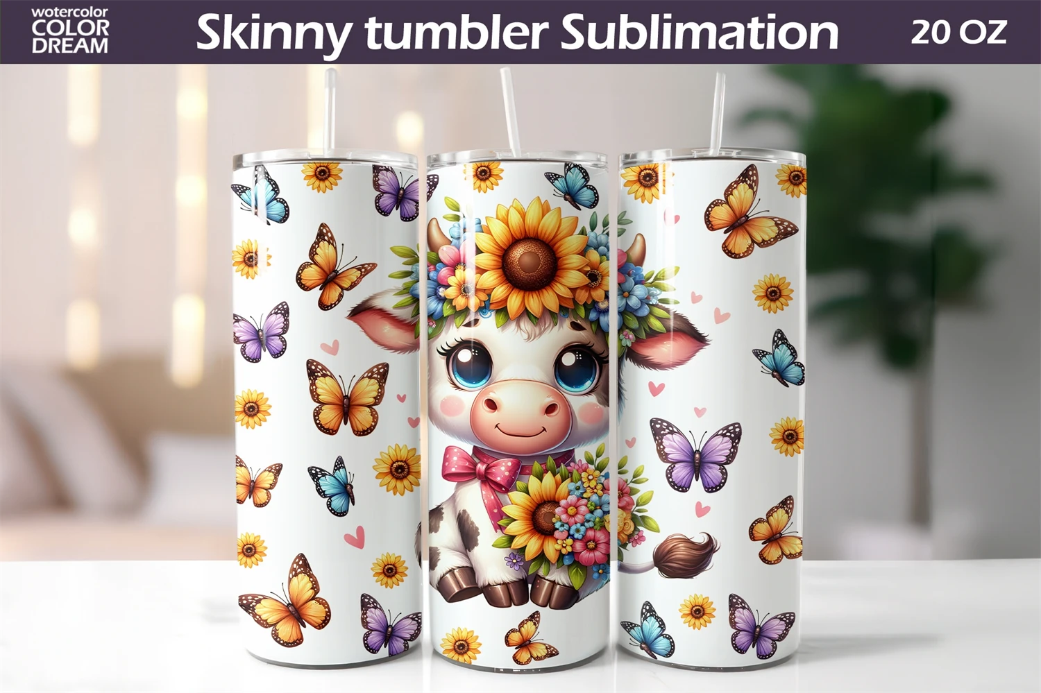 Cute Cow Sunflowers Tumbler. Cow Butterfly Tumbler