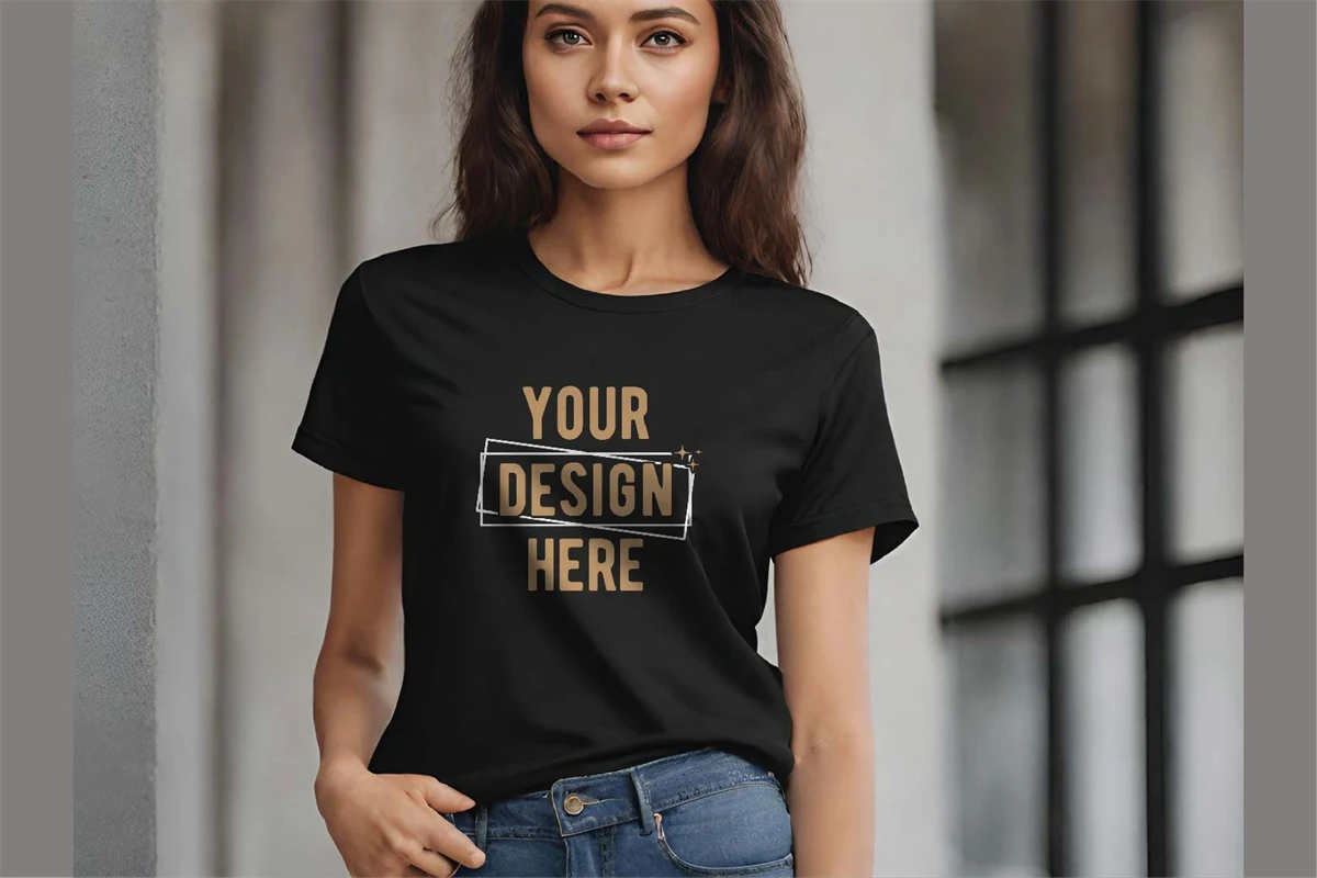 Eye-Catching cute girl black shirt mockup