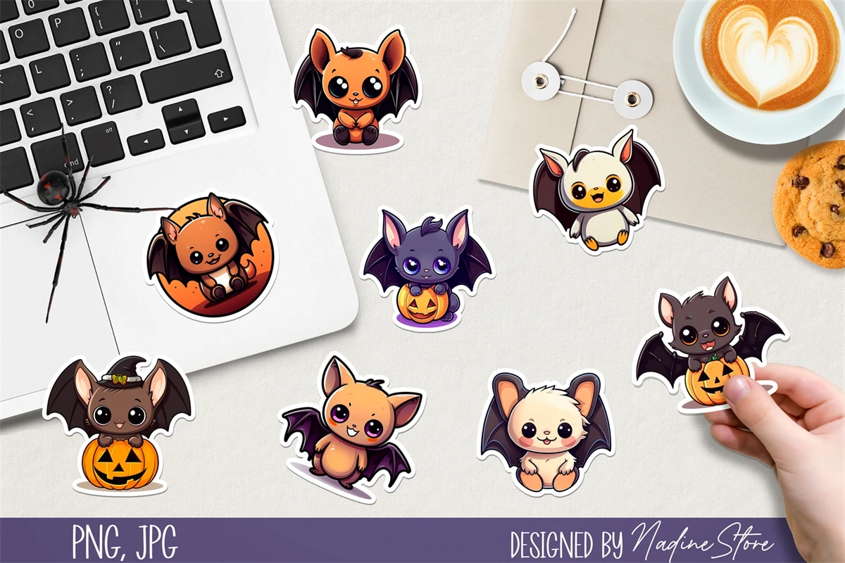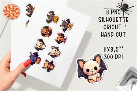INDIVIDUALLY with 8 PNG stickers, size approx 12'' (transparent background)