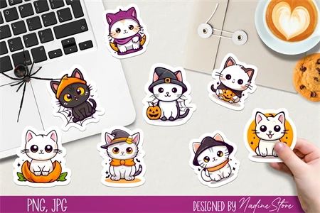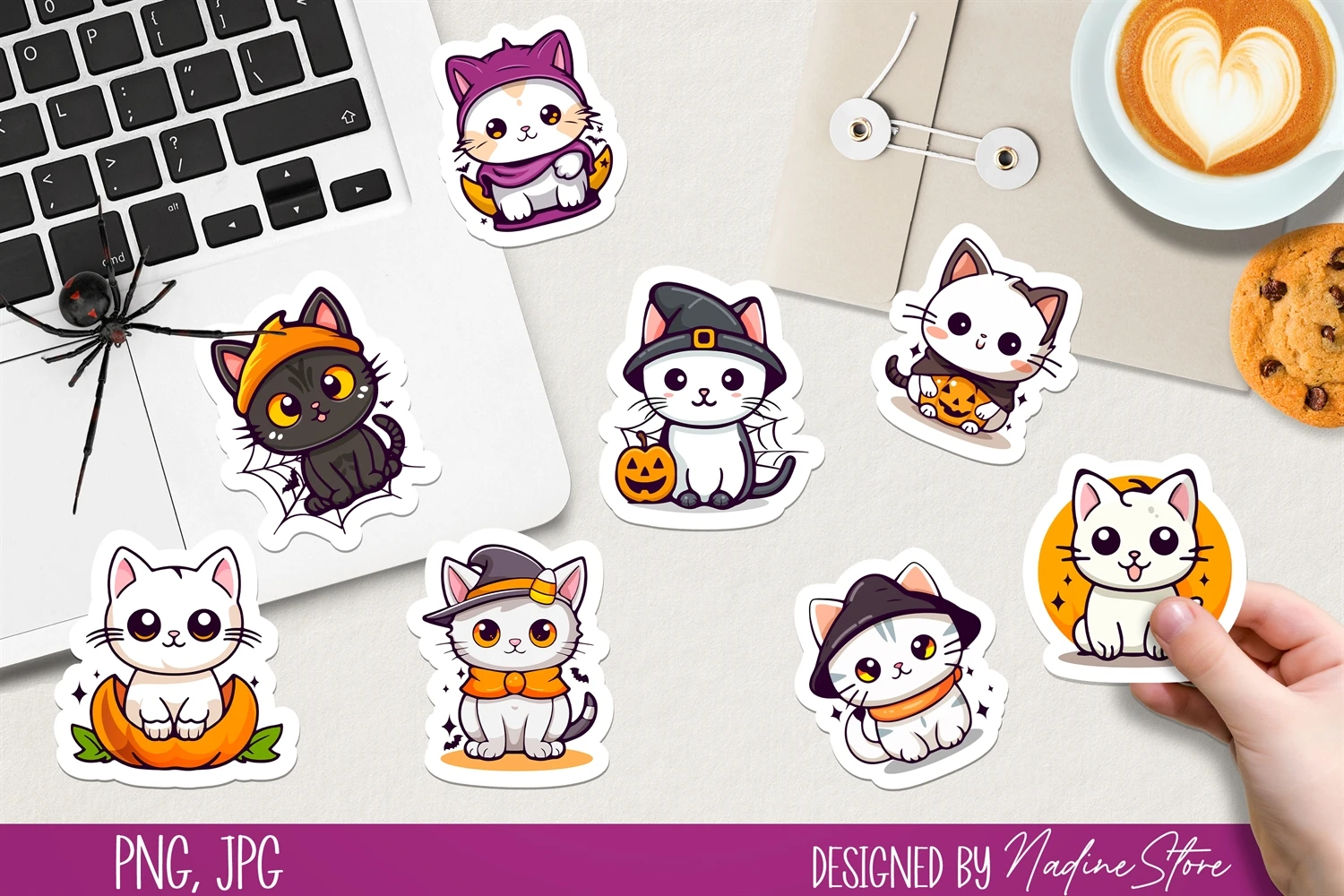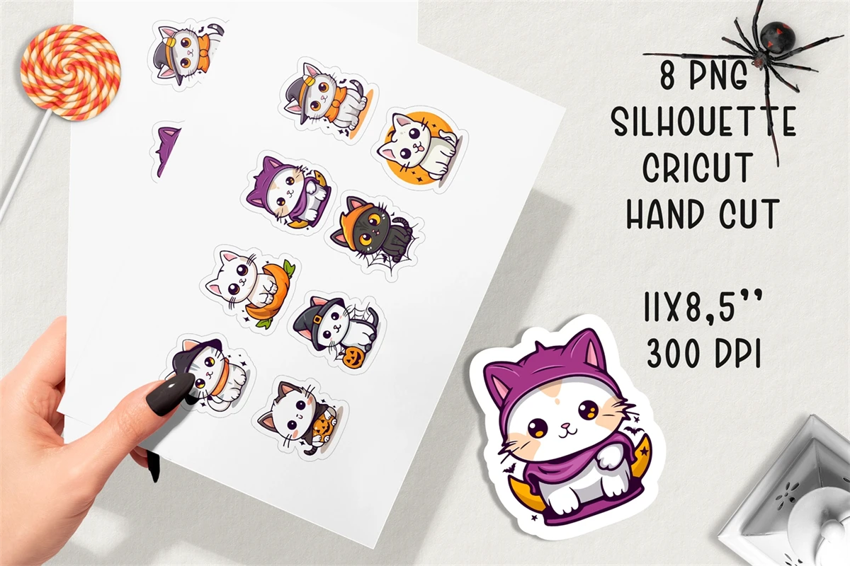 INDIVIDUALLY with 8 PNG stickers, size approx 8'' (transparent background)