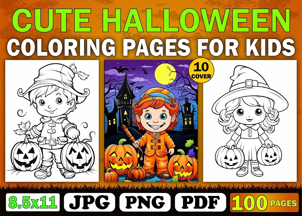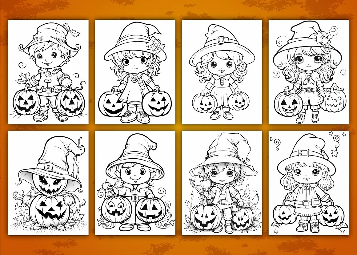 Coloring Pages, Cats, Grinning Pumpkins, Ghost, Cute Halloween And Much More...
