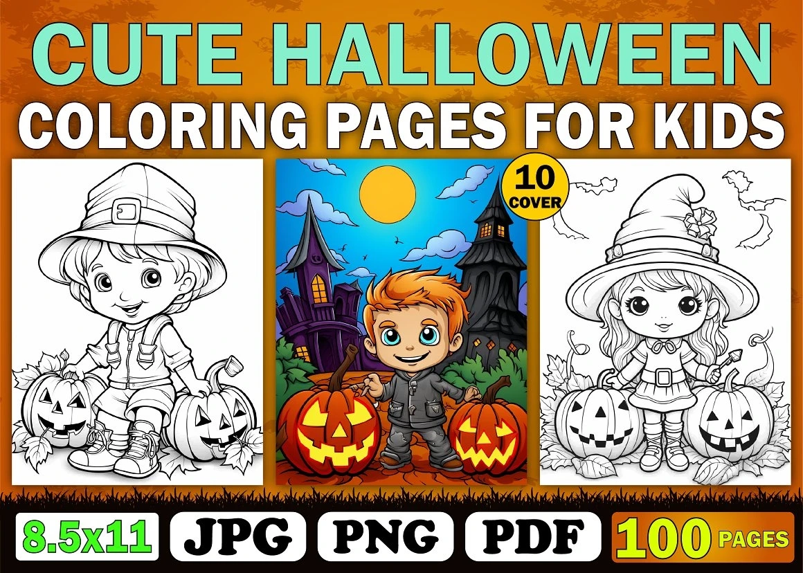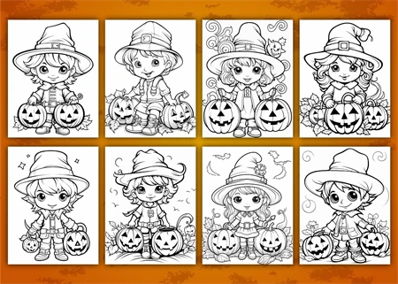 Coloring Pages, Cats, Grinning Pumpkins, Ghost, Cute Halloween And Much More...